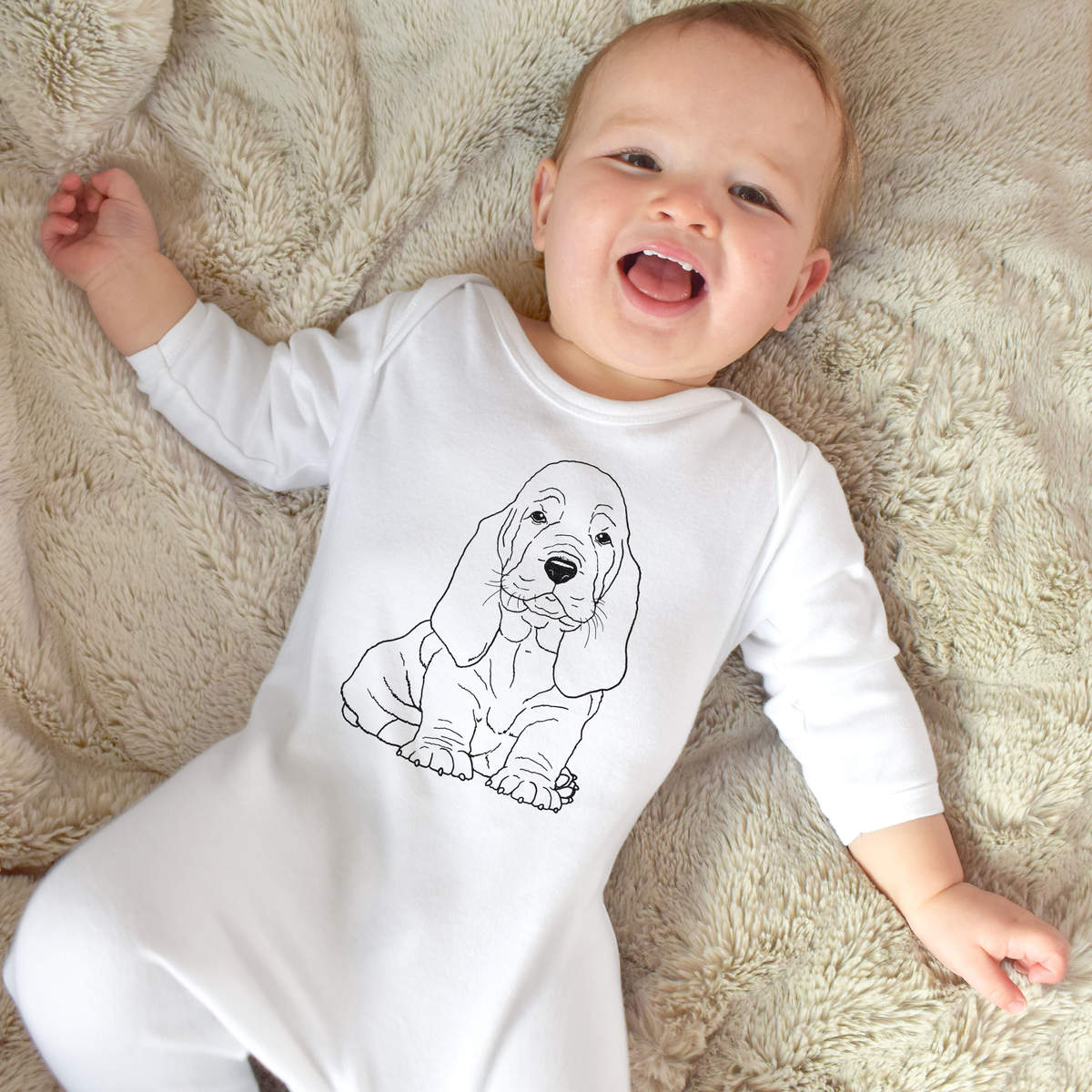 0-3 Month 'Basset Hound Puppy' Baby Romper Jumpsuit / Sleep Suit (SS00035044)