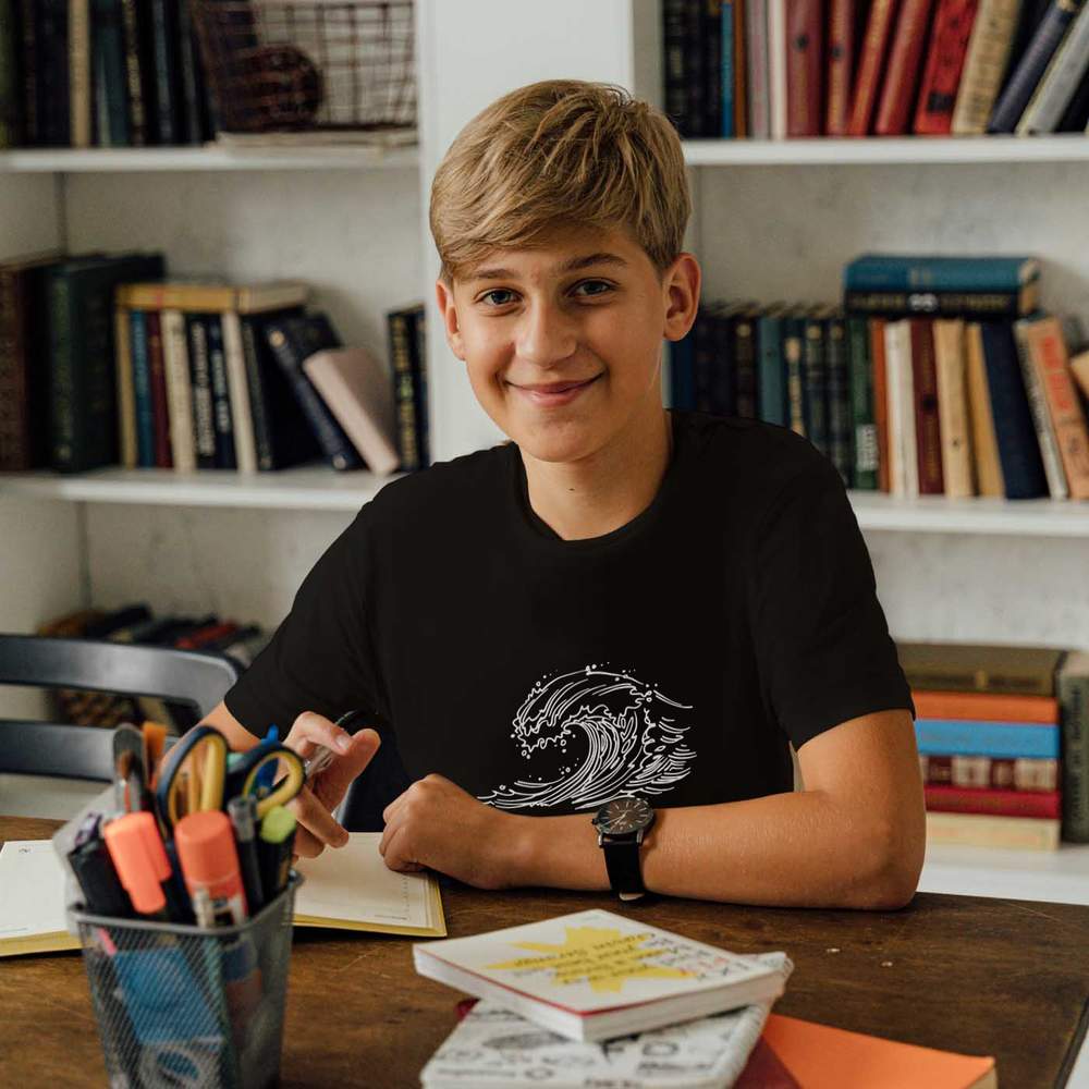 12-13 Years 'Crashing Wave' Children's / Kid's T-Shirt (Black) (TS00236714)