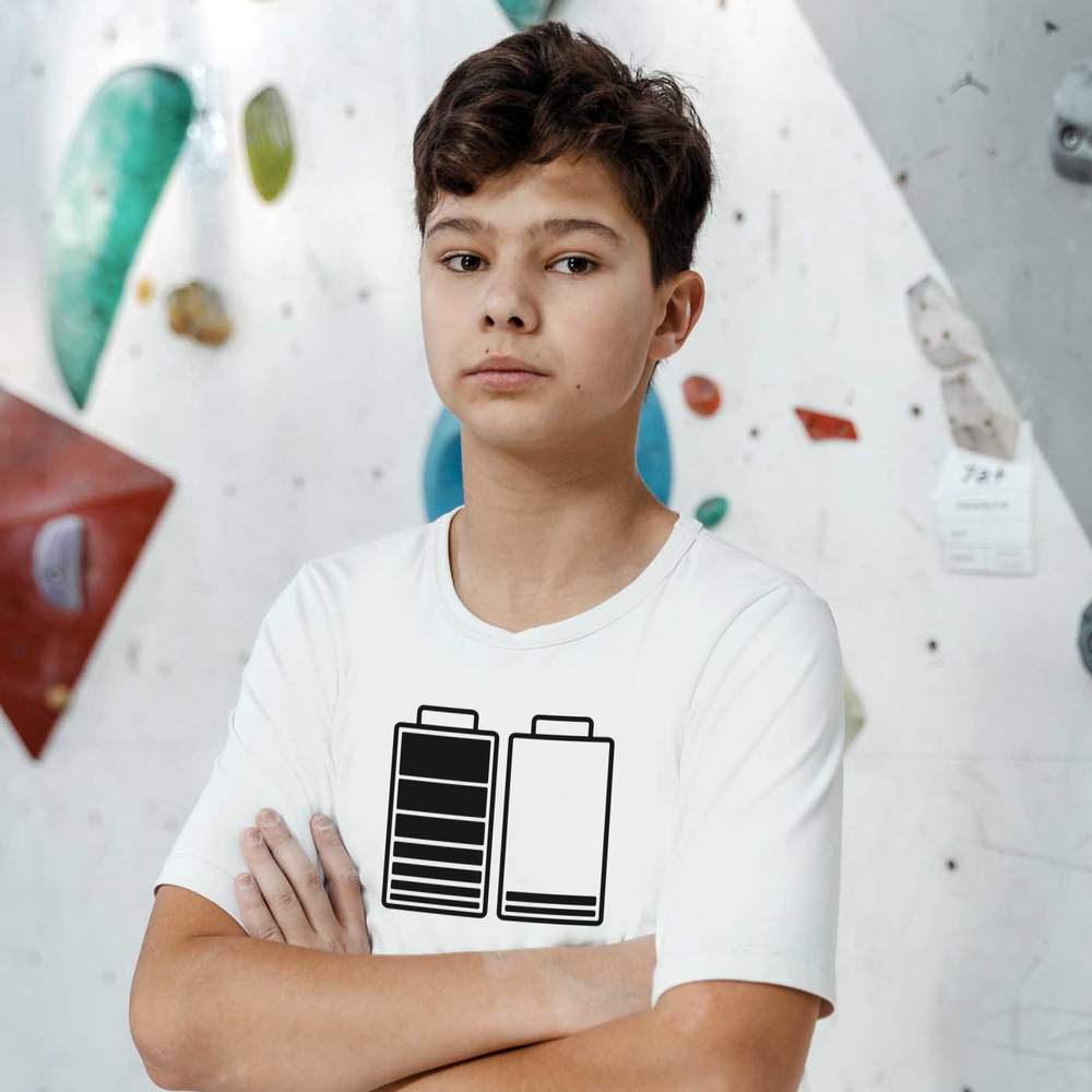 12-13 Years 'Low & Full Battery Symbols' Children's / Kid's T-Shirt (White) (TS00126312)