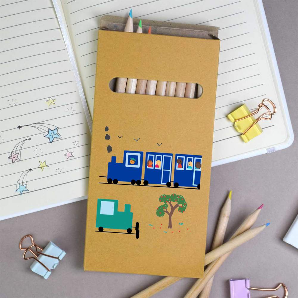 Our sets of wooden colouring pencils make an ideal gift (personal or corporate) and are really handy when you need to do some colouring in. There are 12 assorted full size colouring pencils per box (colours may vary) and the storage box they come in features one of our unique designs.