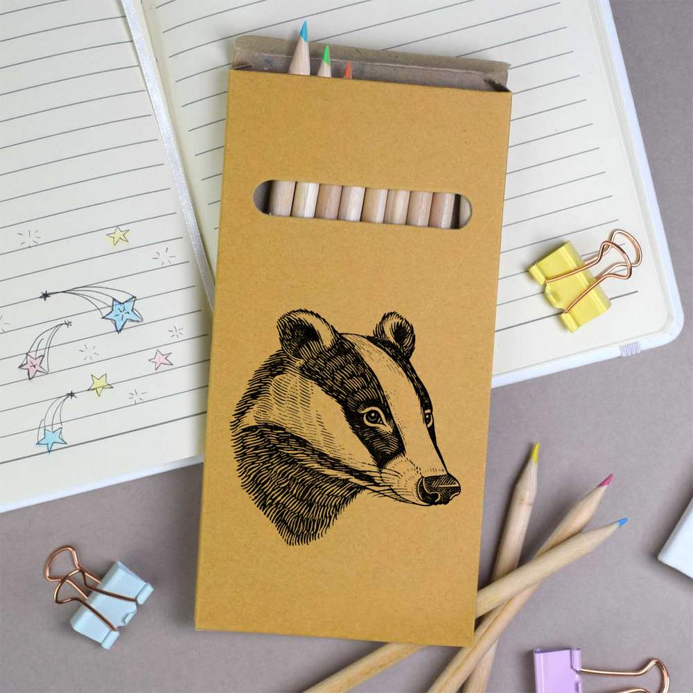 12 x 'Badger Portrait' Long 178mm Coloured Pencils / Pencil Set (PE00077947)