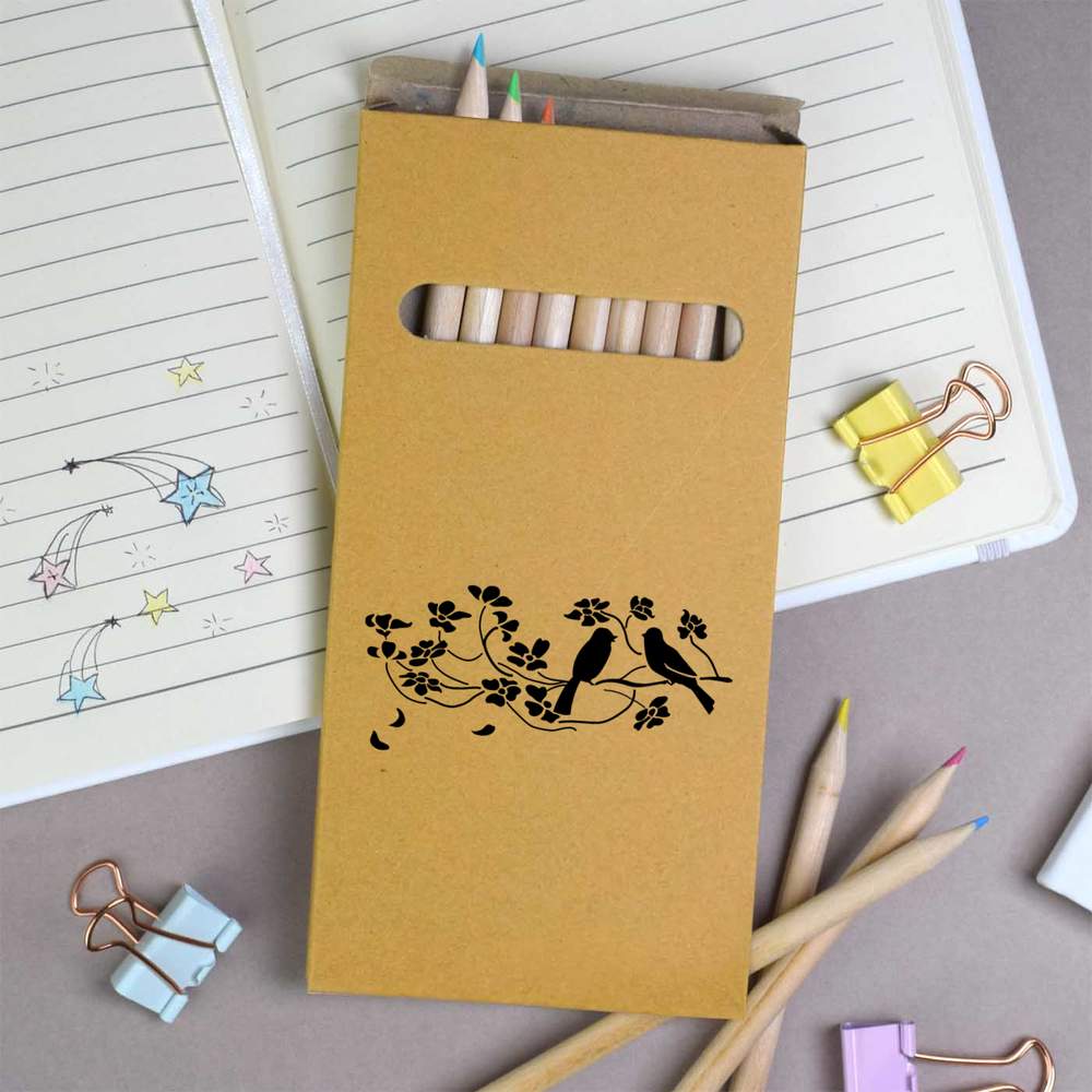 12 x 'Birds On A Branch' Long 178mm Coloured Pencils / Pencil Set (PE00012868)