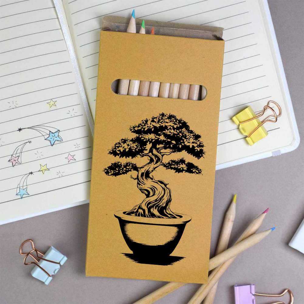 12 x 'Bonsai Tree in Pot' Long 178mm Coloured Pencils / Pencil Set (PE00077443)