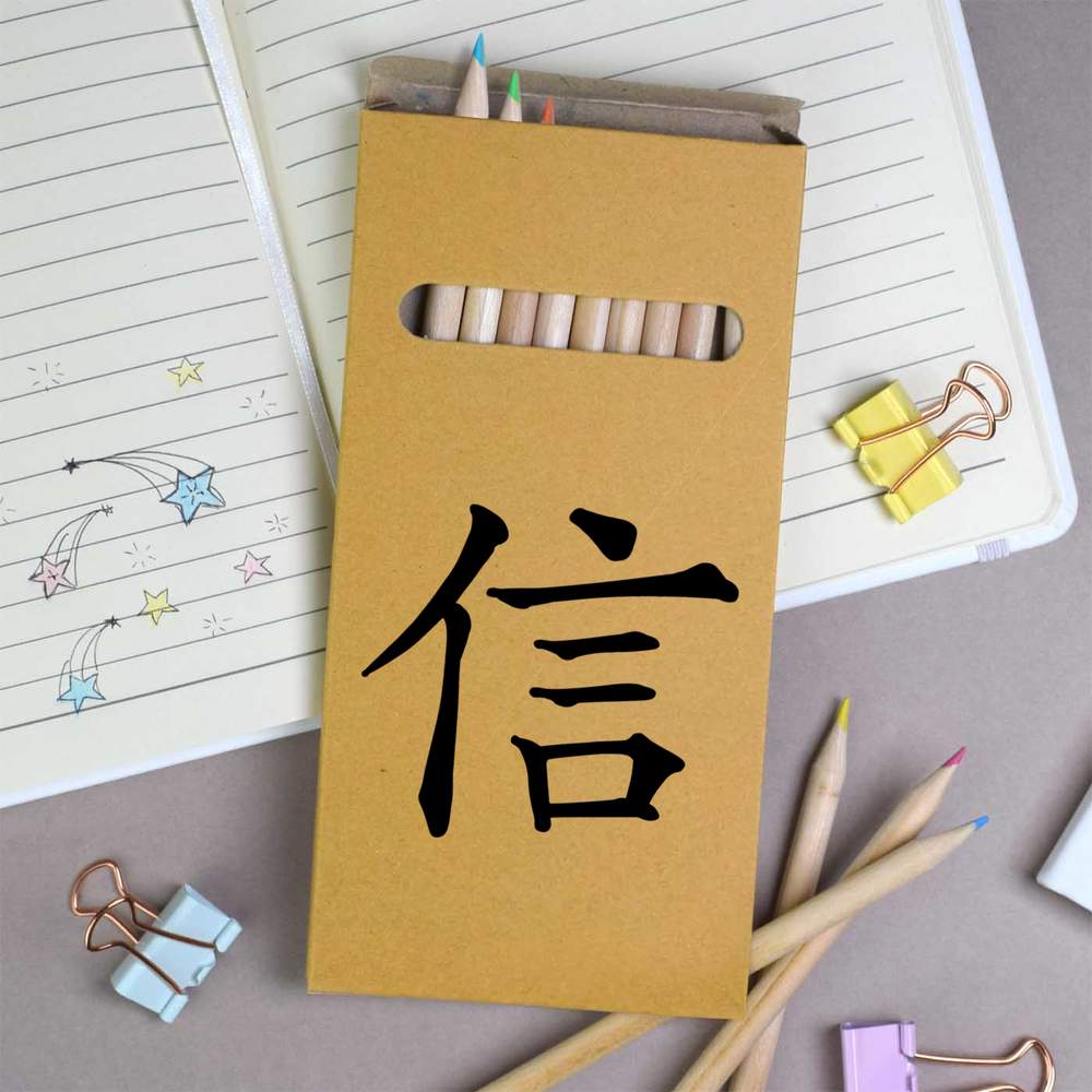 12 x 'Chinese Symbol' Long 178mm Coloured Pencils / Pencil Set (PE00032930)