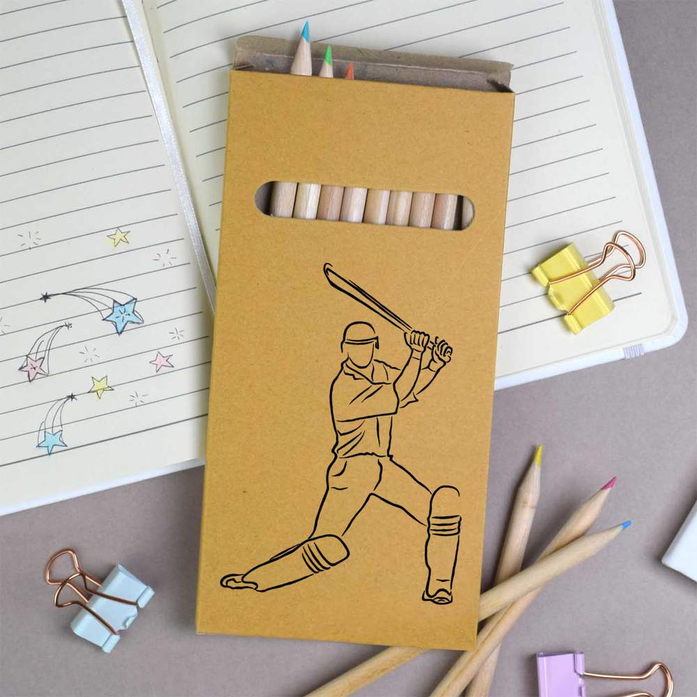 12 x 'Cricket Batsman' Long 178mm Coloured Pencils / Pencil Set (PE00034876)