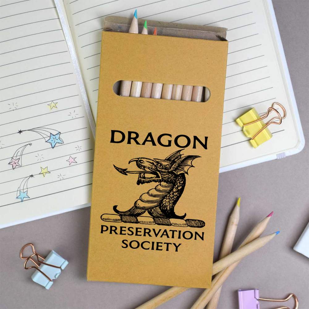 12 x 'Dragon Preservation Society' Long 178mm Coloured Pencils / Pencil Set (PE00055033)