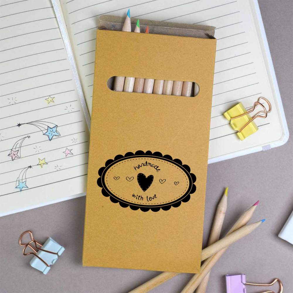 12 x 'Handmade With Love Oval' Long 178mm Coloured Pencils / Pencil Set (PE00003542)