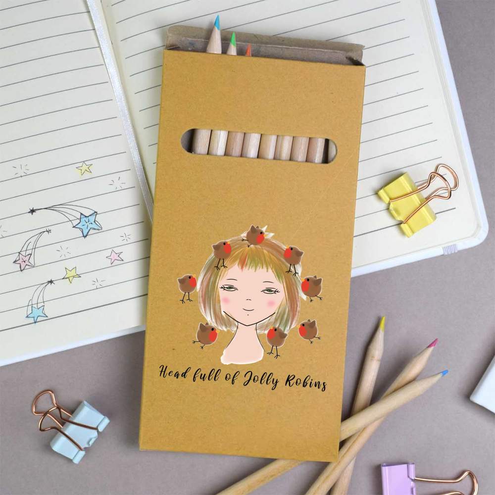 Our sets of wooden colouring pencils make an ideal gift (personal or corporate) and are really handy when you need to do some colouring in. There are 12 assorted full size colouring pencils per box (colours may vary) and the storage box they come in features one of our unique designs.