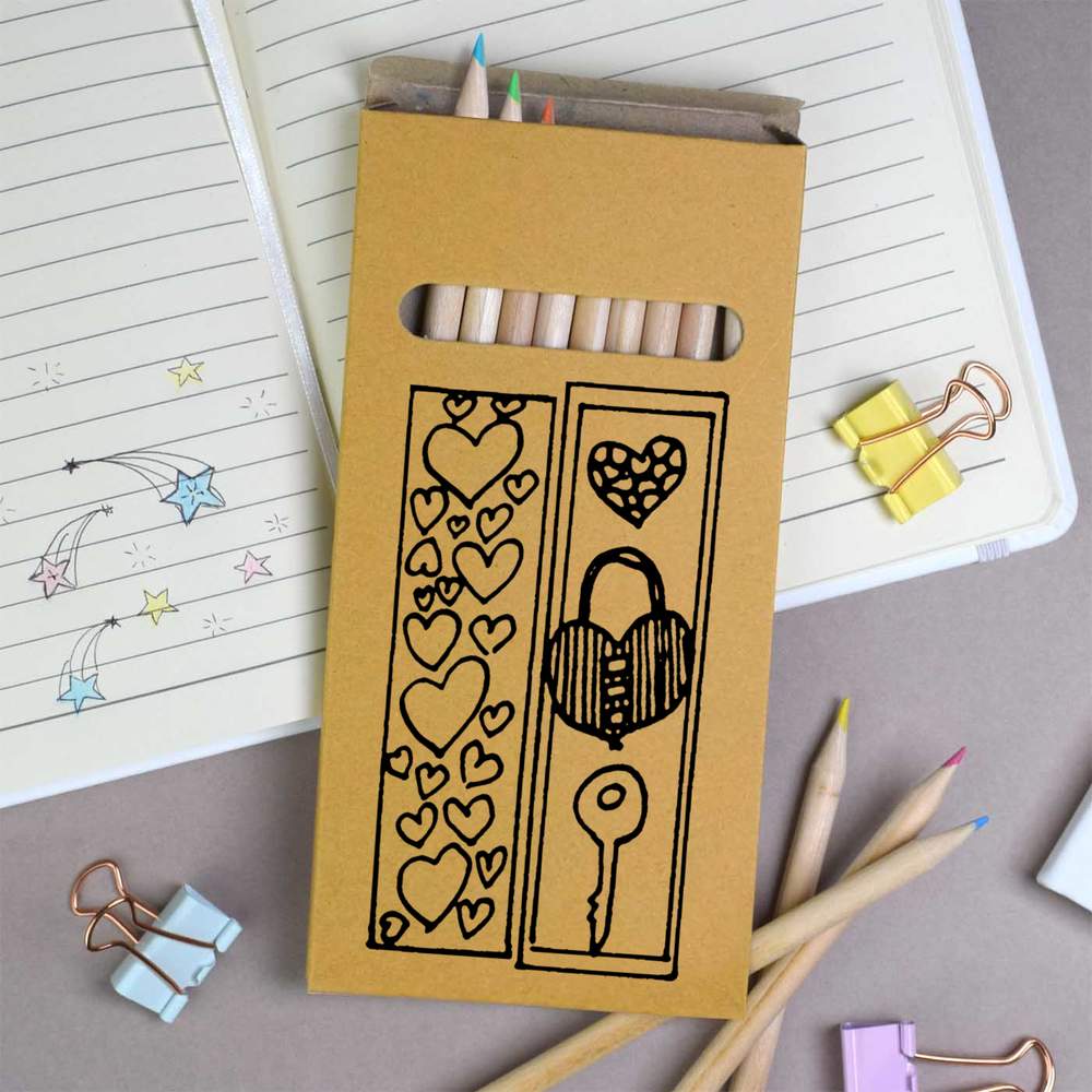 12 x 'Hearts With Lock & Key' Long 178mm Coloured Pencils / Pencil Set (PE00006046)
