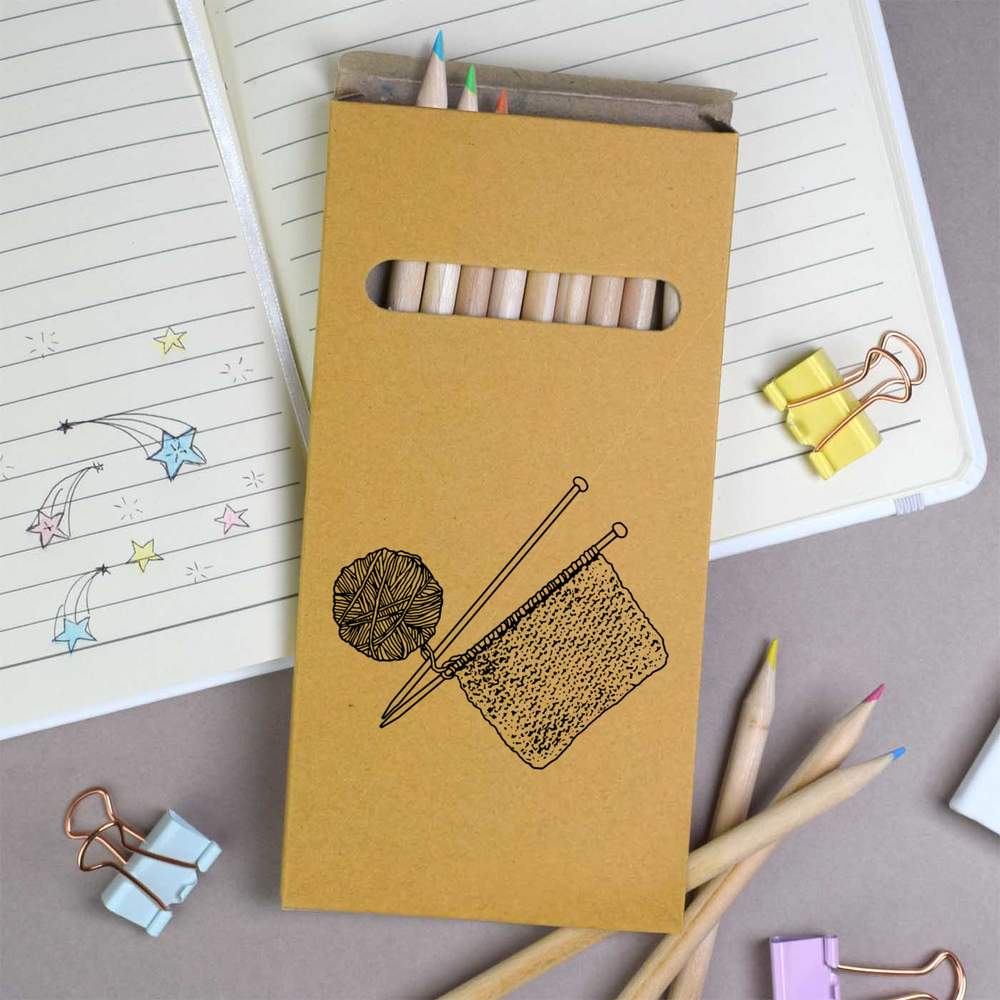 12 x 'Knitting Needles & Thread' Long 178mm Coloured Pencils / Pencil Set (PE00029656)
