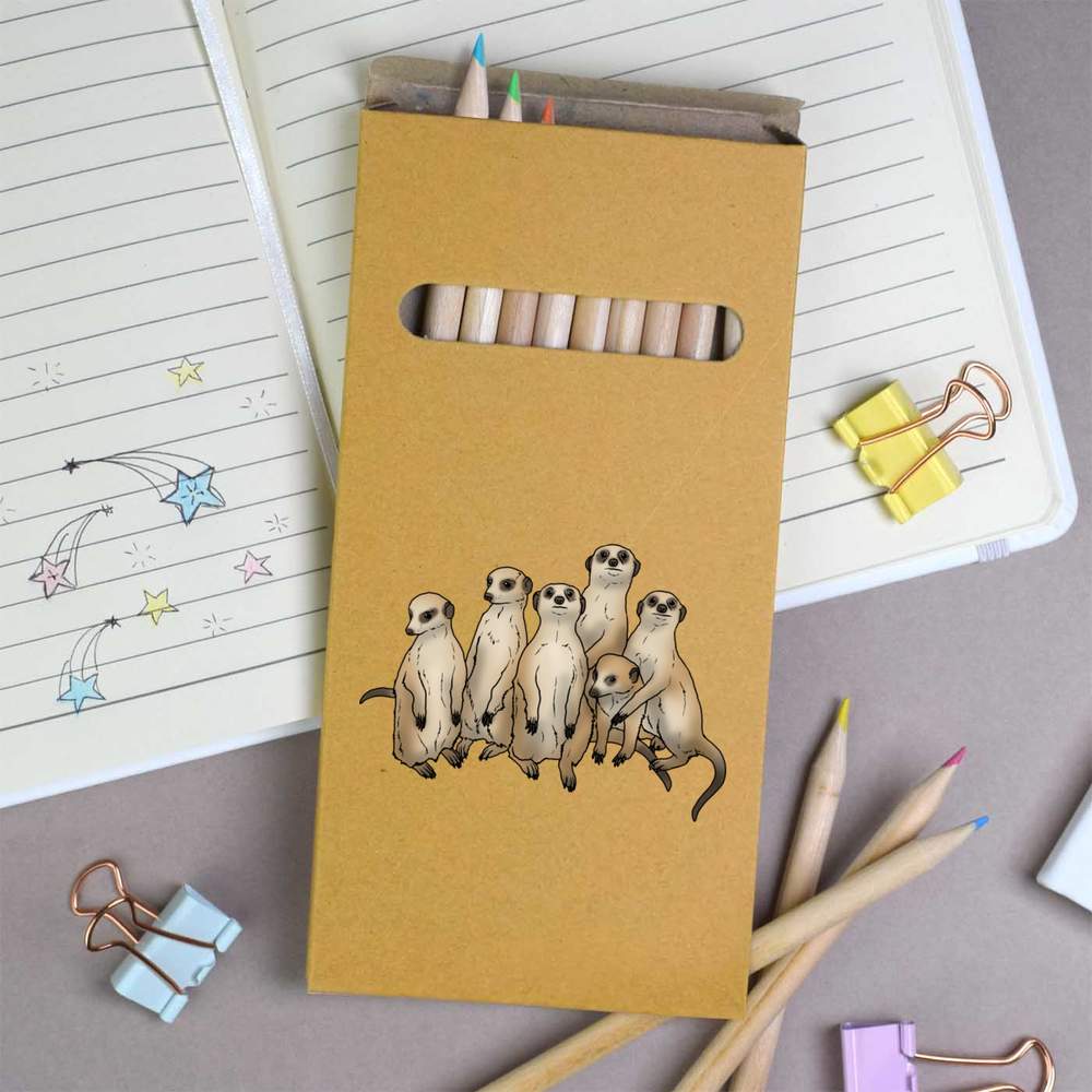 12 x 'Mob Of Meerkats' Long 178mm Coloured Pencils / Pencil Set (PE00043327)