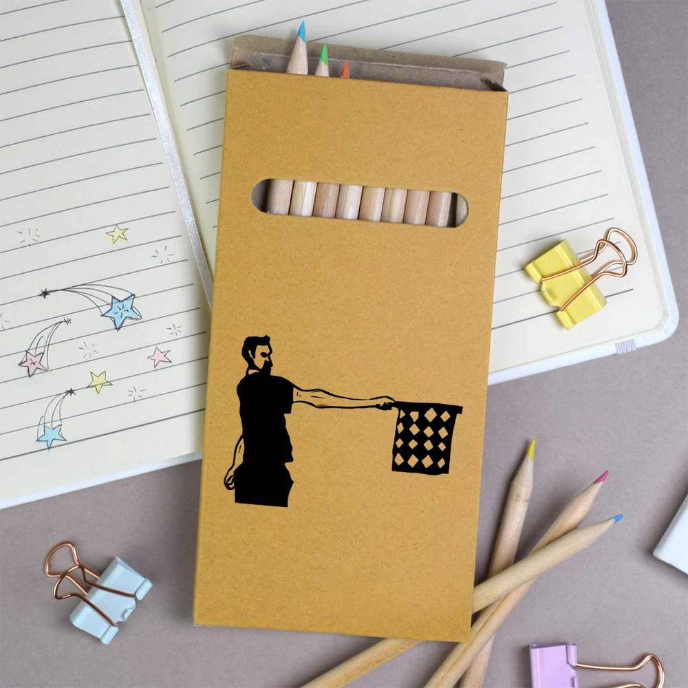 Our sets of wooden colouring pencils make an ideal gift (personal or corporate) and are really handy when you need to do some colouring in. There are 12 assorted full size colouring pencils per box (colours may vary) and the storage box they come in features one of our unique designs.