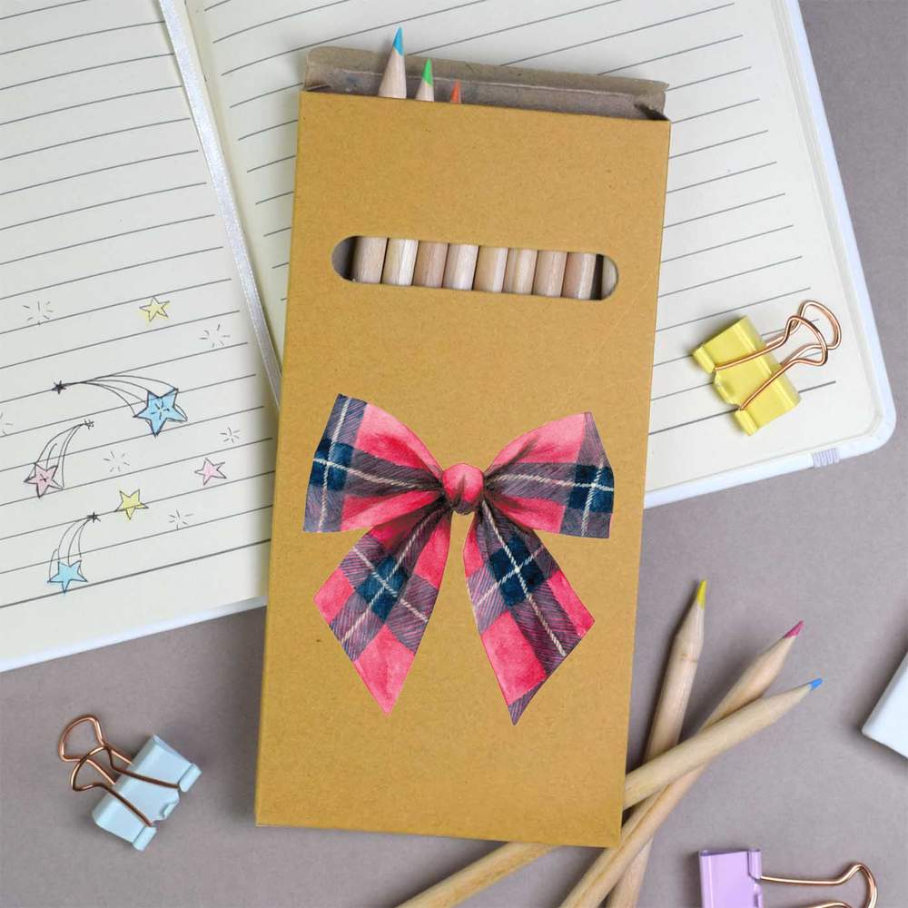 12 x 'Scottish Tartan Bow' Long 178mm Coloured Pencils / Pencil Set (PE00082953)