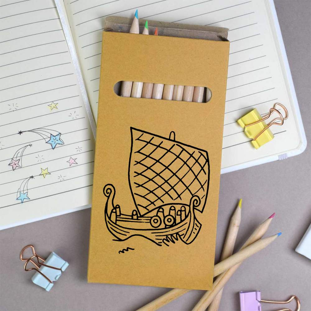 12 x 'Viking Ship' Long 178mm Coloured Pencils / Pencil Set (PE00010506)