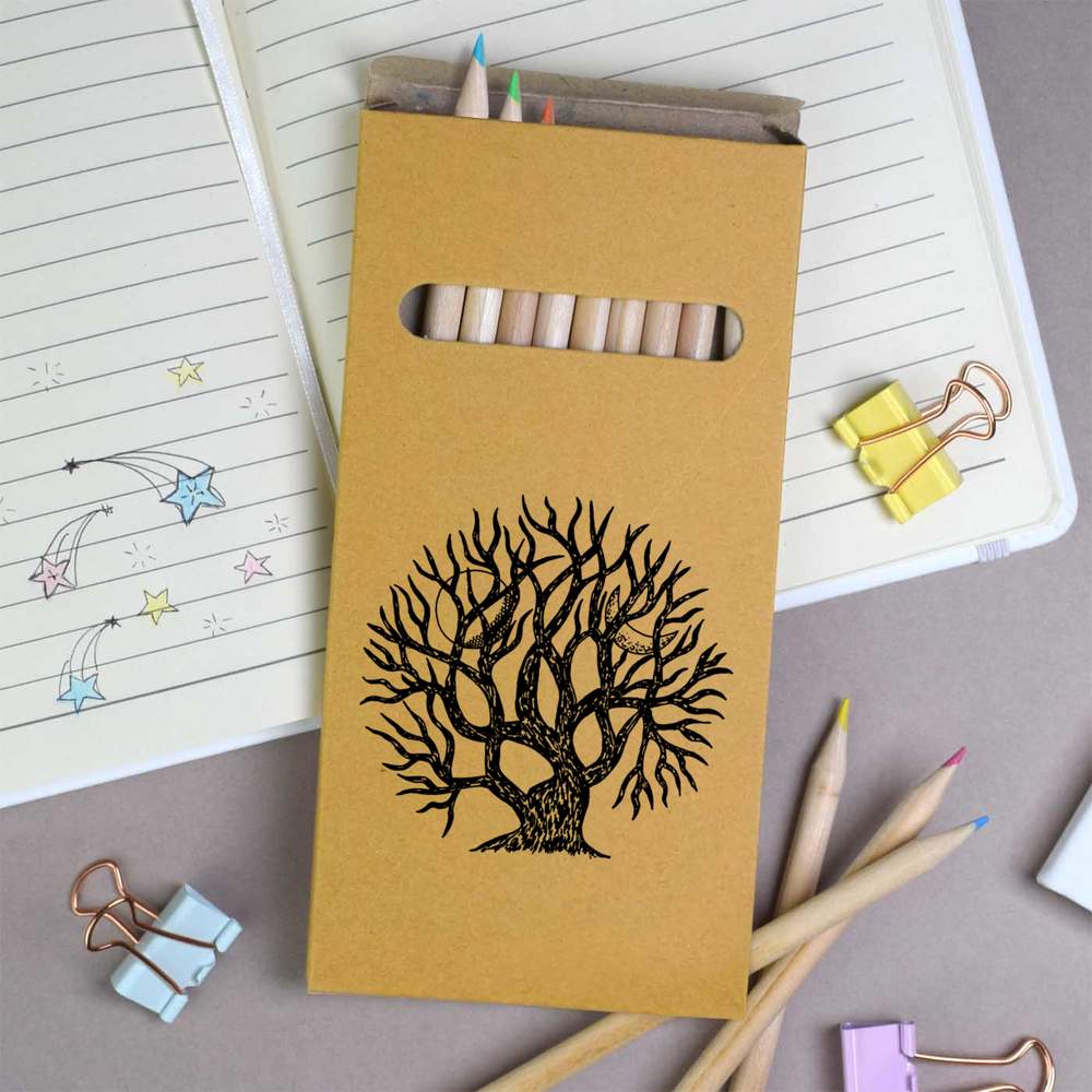 Our sets of wooden colouring pencils make an ideal gift (personal or corporate) and are really handy when you need to do some colouring in. There are 12 assorted full size colouring pencils per box (colours may vary) and the storage box they come in features one of our unique designs.
