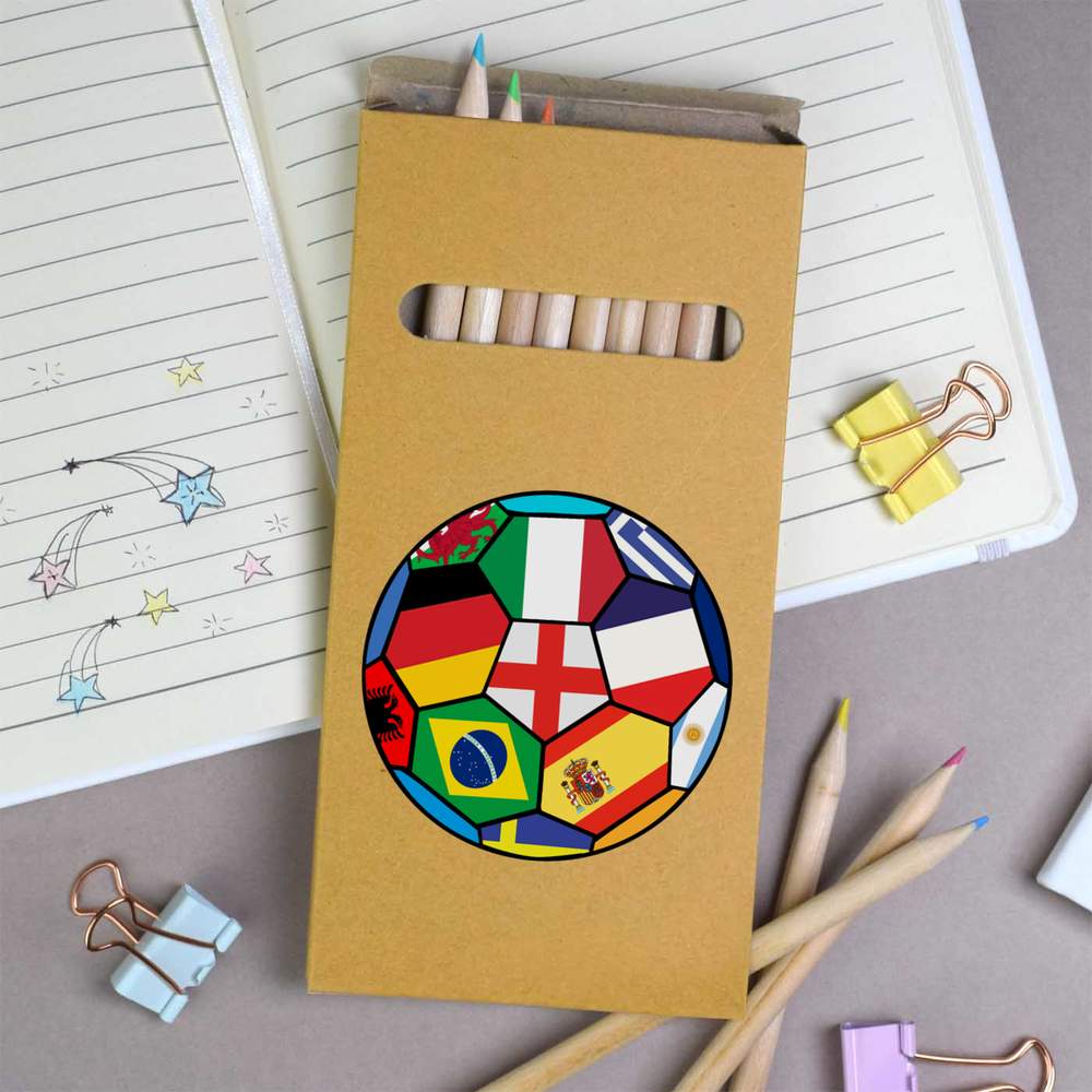 12 x 'World Cup Flags Football' Long 178mm Coloured Pencils / Pencil Set (PE00043595)