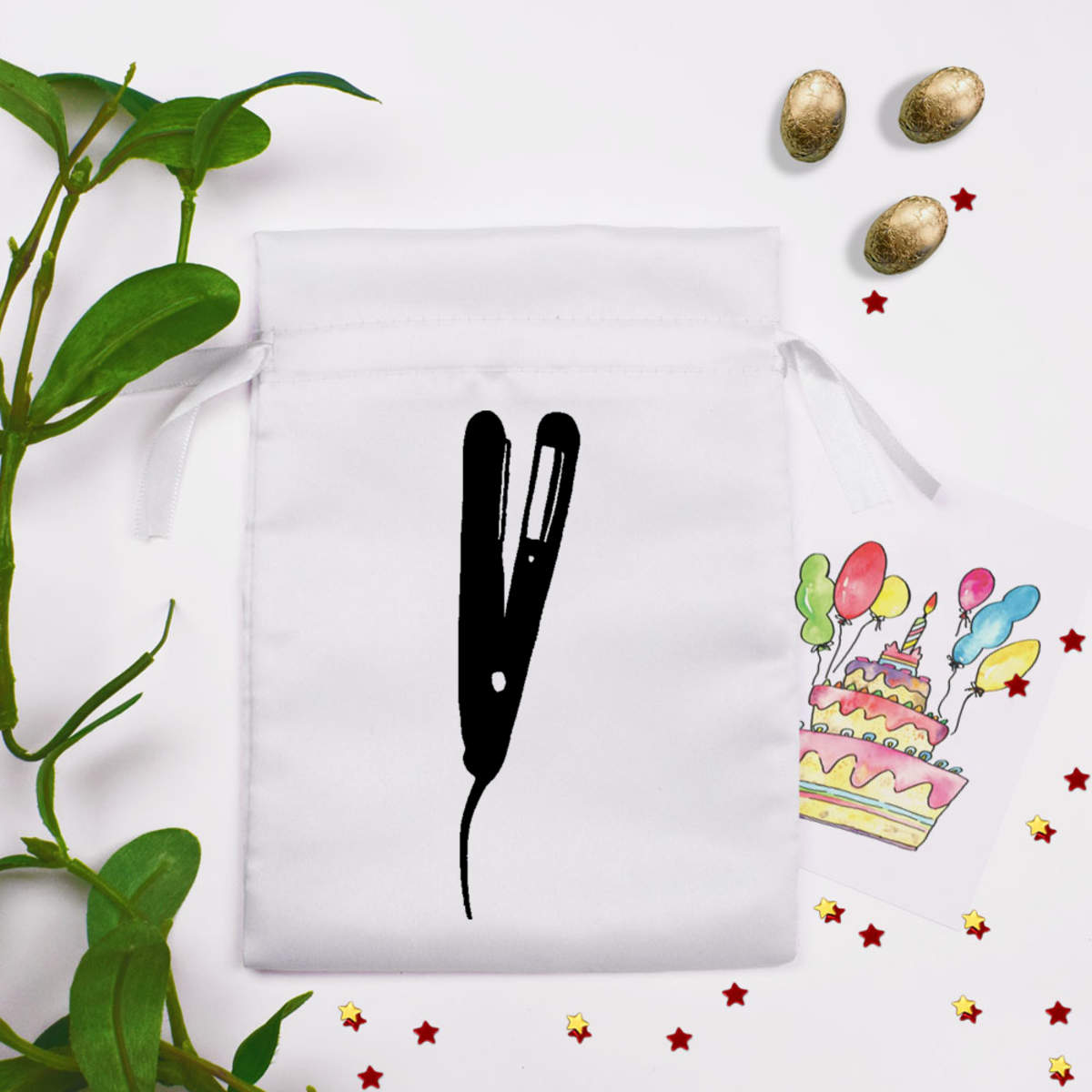 18cm 'Hair Straighteners' Satin Drawstring Bag / Pouch (SB00006391)