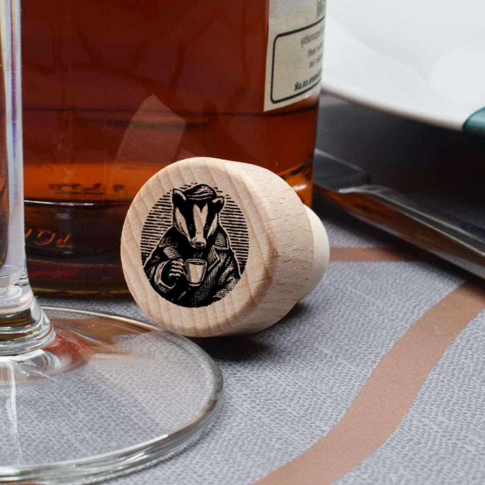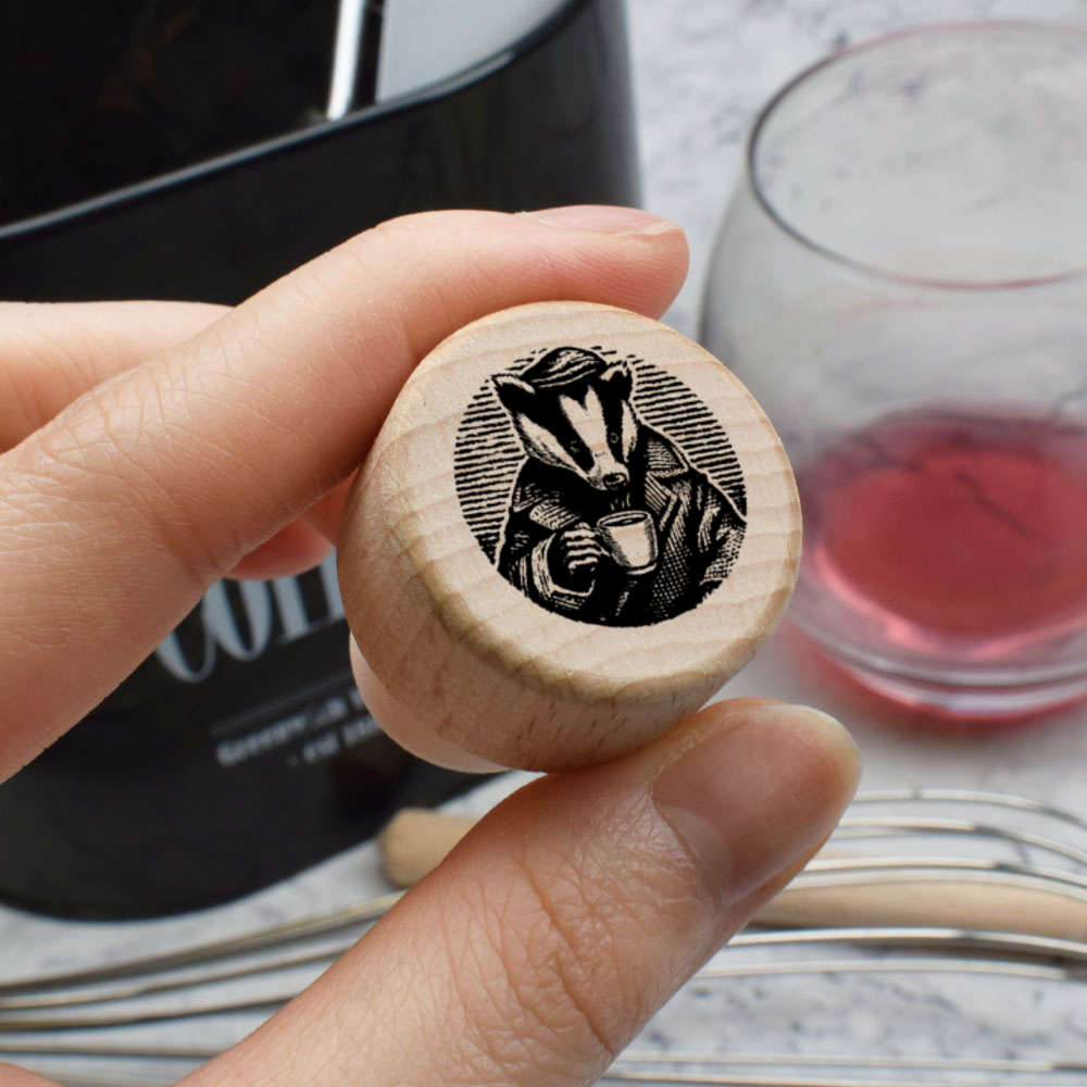19mm 'Badger with Coffee' Wooden Bottle Stopper / Cork (BS00032619)