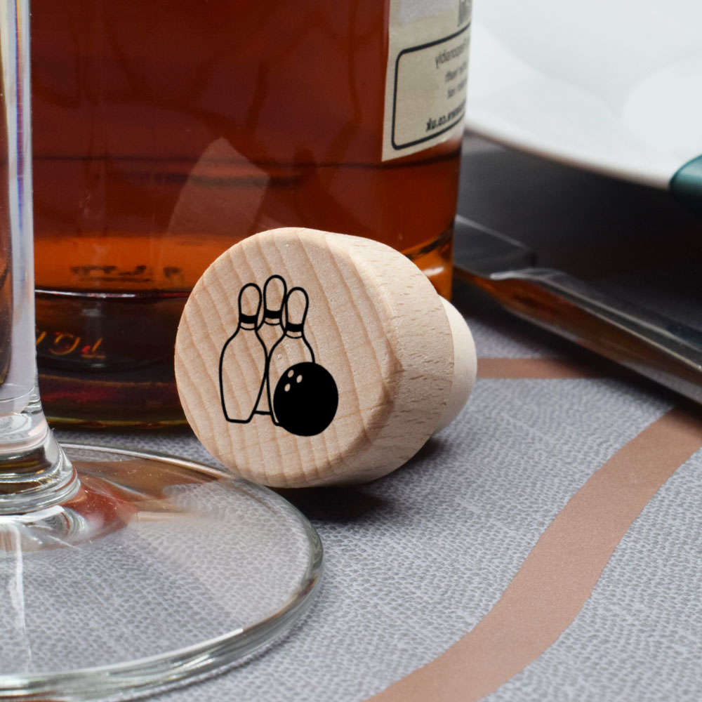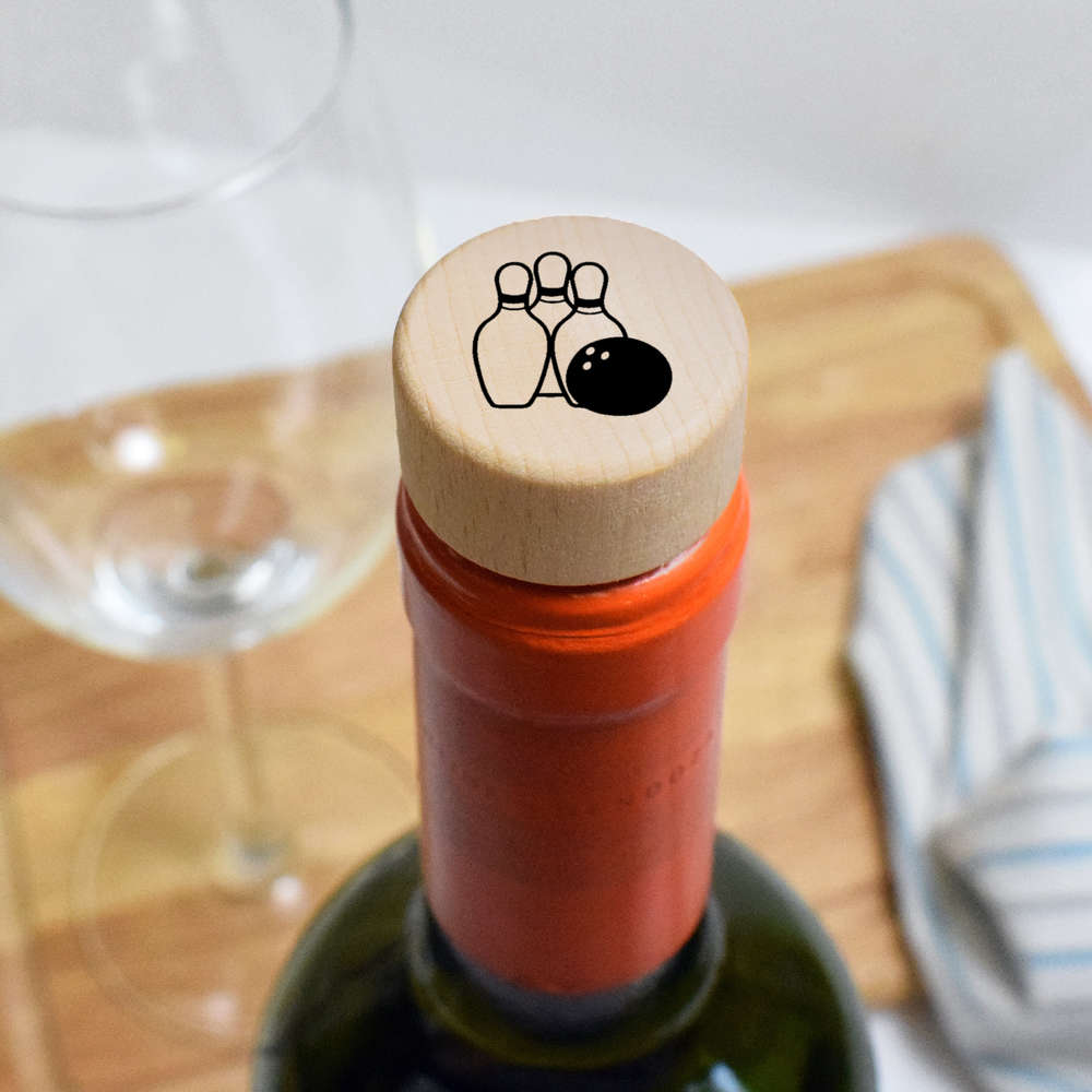 19mm 'Bowling Ball & Pins' Wooden Bottle Stopper / Cork (BS00012746)