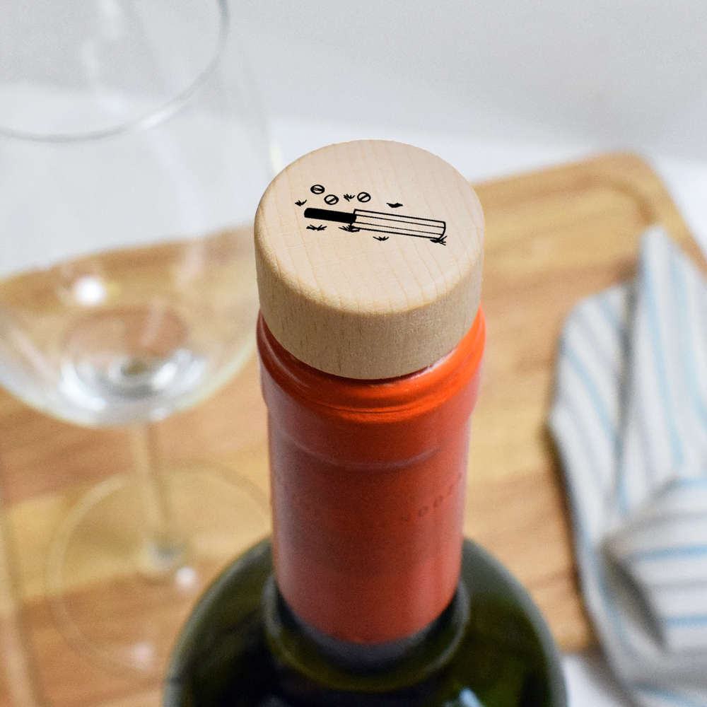 Printed with a unique design on the top, this T-shaped bottle stopper will make a great accessory for any kitchen…and help keep the wine fresh! The head is made of natural wood and the stopper is synthetic cork.