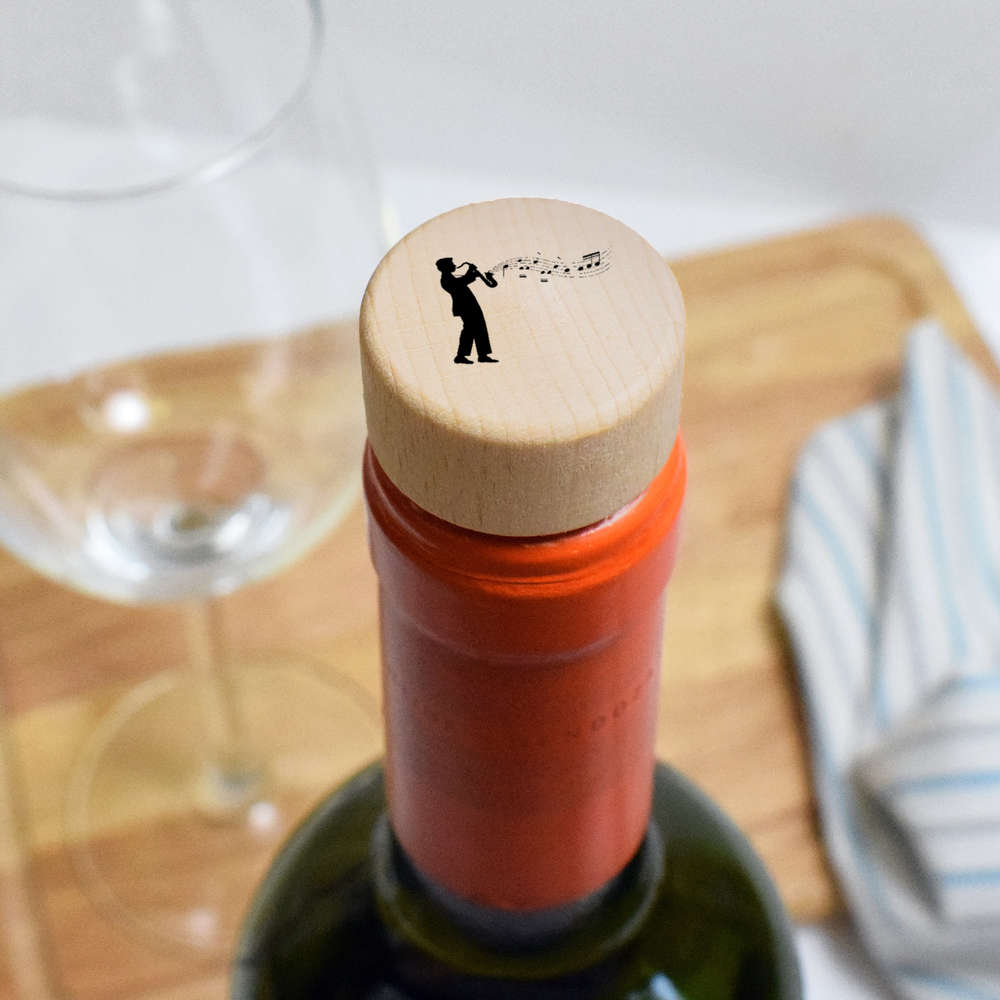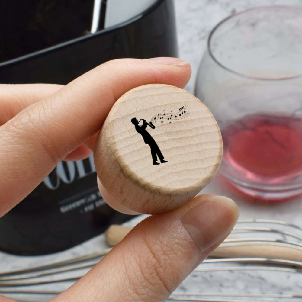 19mm 'Saxaphone Player' Wooden Bottle Stopper / Cork (BS00033038)