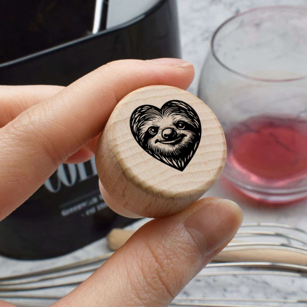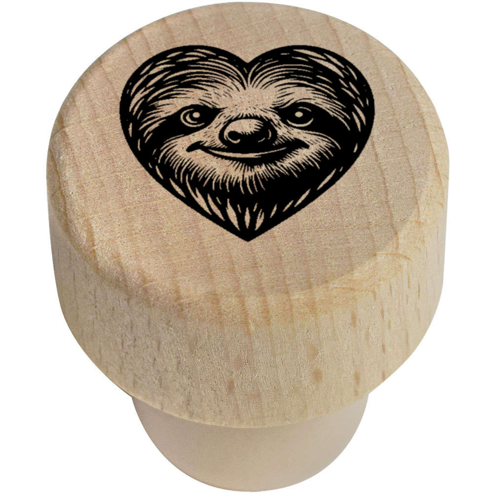 19mm 'Sloth in a Heart' Wooden Bottle Stopper / Cork (BS00027990)