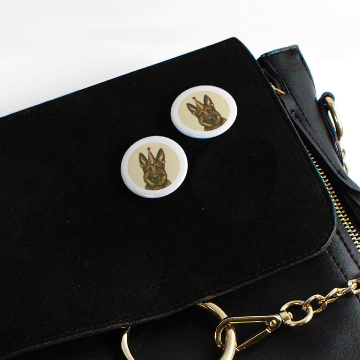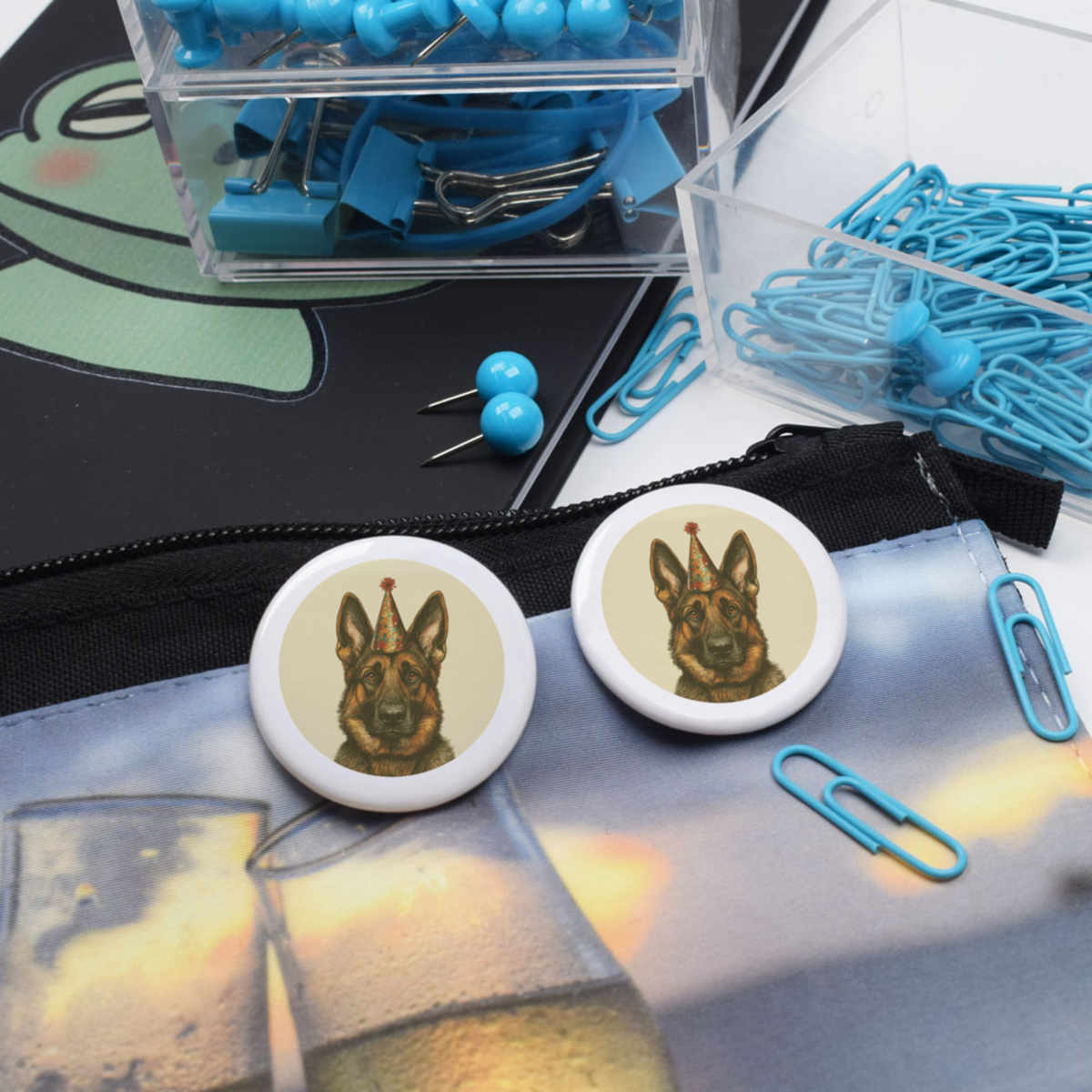 2 x 38mm 'German Shepherd with Party Hat' Small Button Pin Badges (BB00140835)