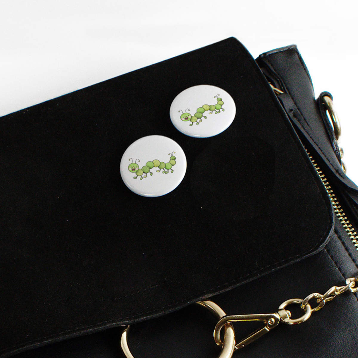 2 x 38mm 'Happy Caterpillar' Small Button Pin Badges (BB00056151)