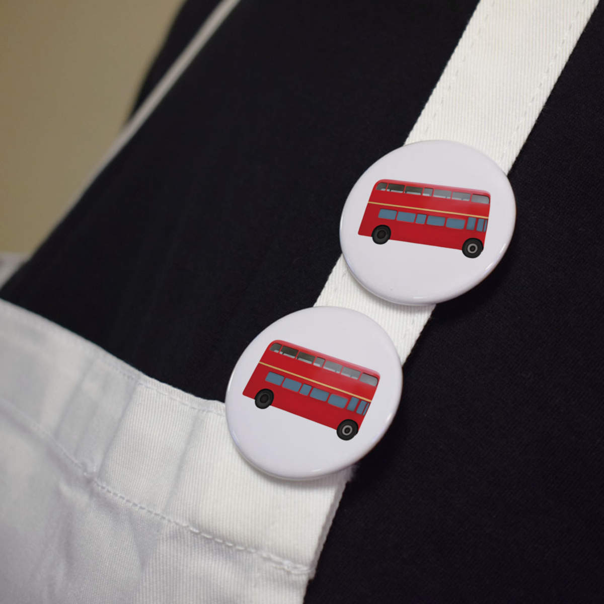 2 x 38mm 'London Bus' Small Button Pin Badges (BB00056625)