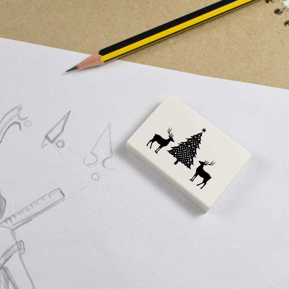 2 x 45mm 'Christmas Tree with Two Reindeer Silhouette' Erasers / Rubbers (ER00050258)
