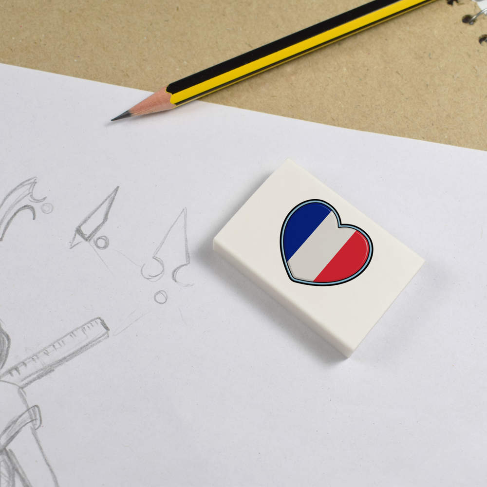 2 x 45mm 'French Flag Heart' Erasers / Rubbers (ER00035664)