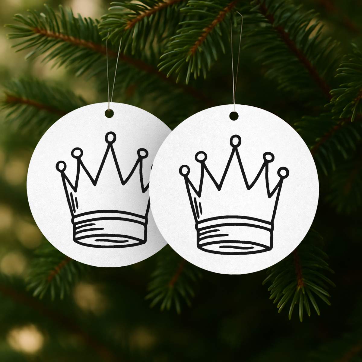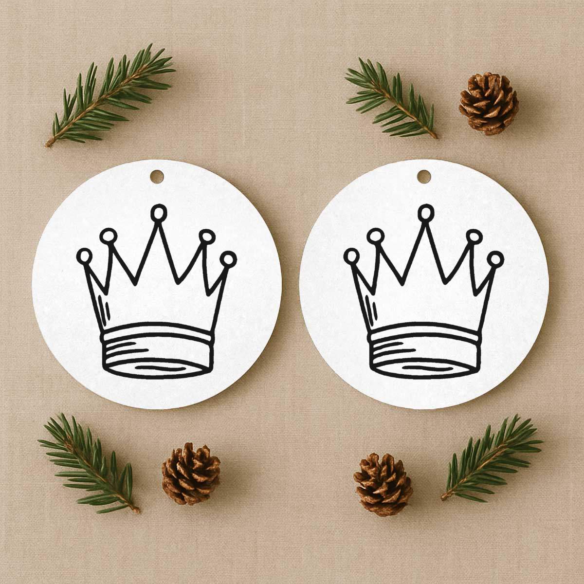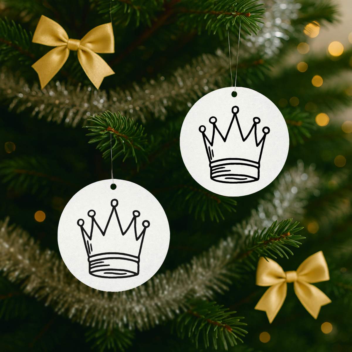 2 x 70mm 'Cartoon Crown' Flat Christmas Baubles – Festive Tree Decorations & Hanging Ornaments for Holiday Decorating & Gifting (CB00132837)