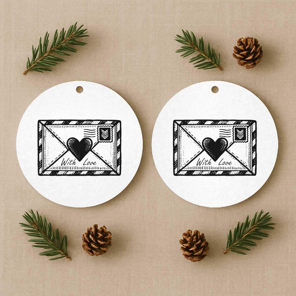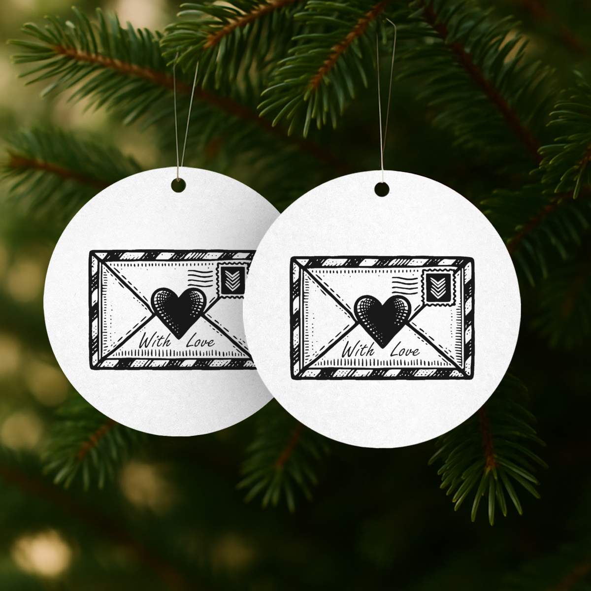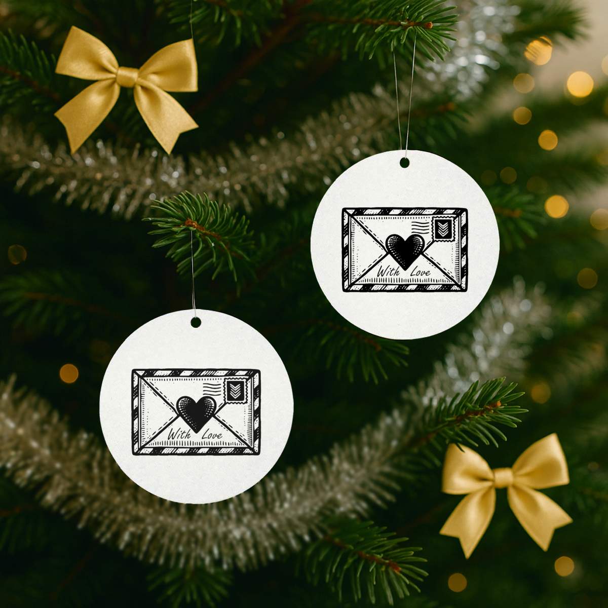 2 x 70mm 'Love Letter' Flat Christmas Baubles – Festive Tree Decorations & Hanging Ornaments for Holiday Decorating & Gifting (CB00129737)