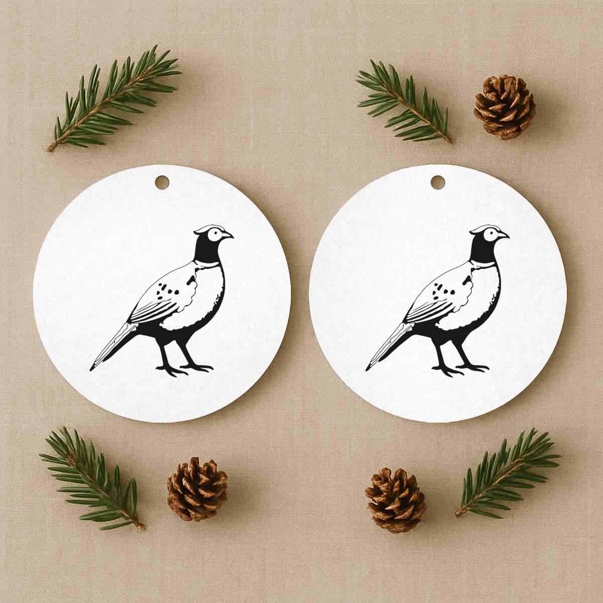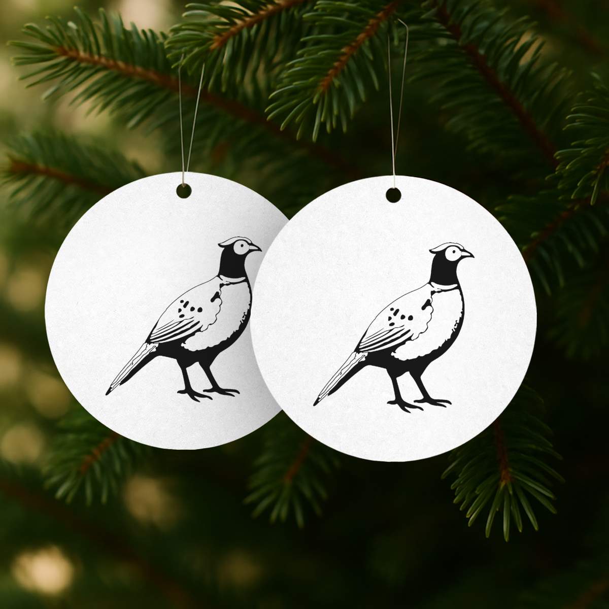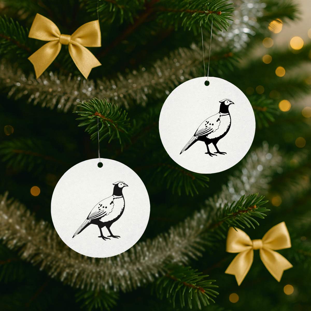 2 x 70mm 'Proud Pheasant' Flat Christmas Baubles – Festive Tree Decorations & Hanging Ornaments for Holiday Decorating & Gifting (CB00132492)