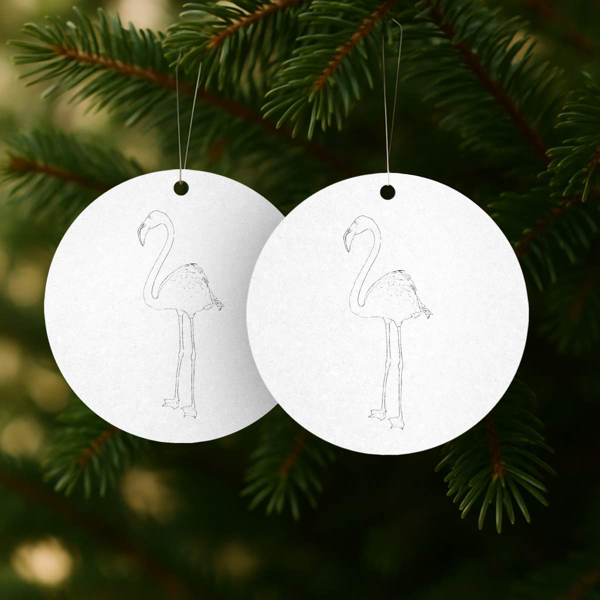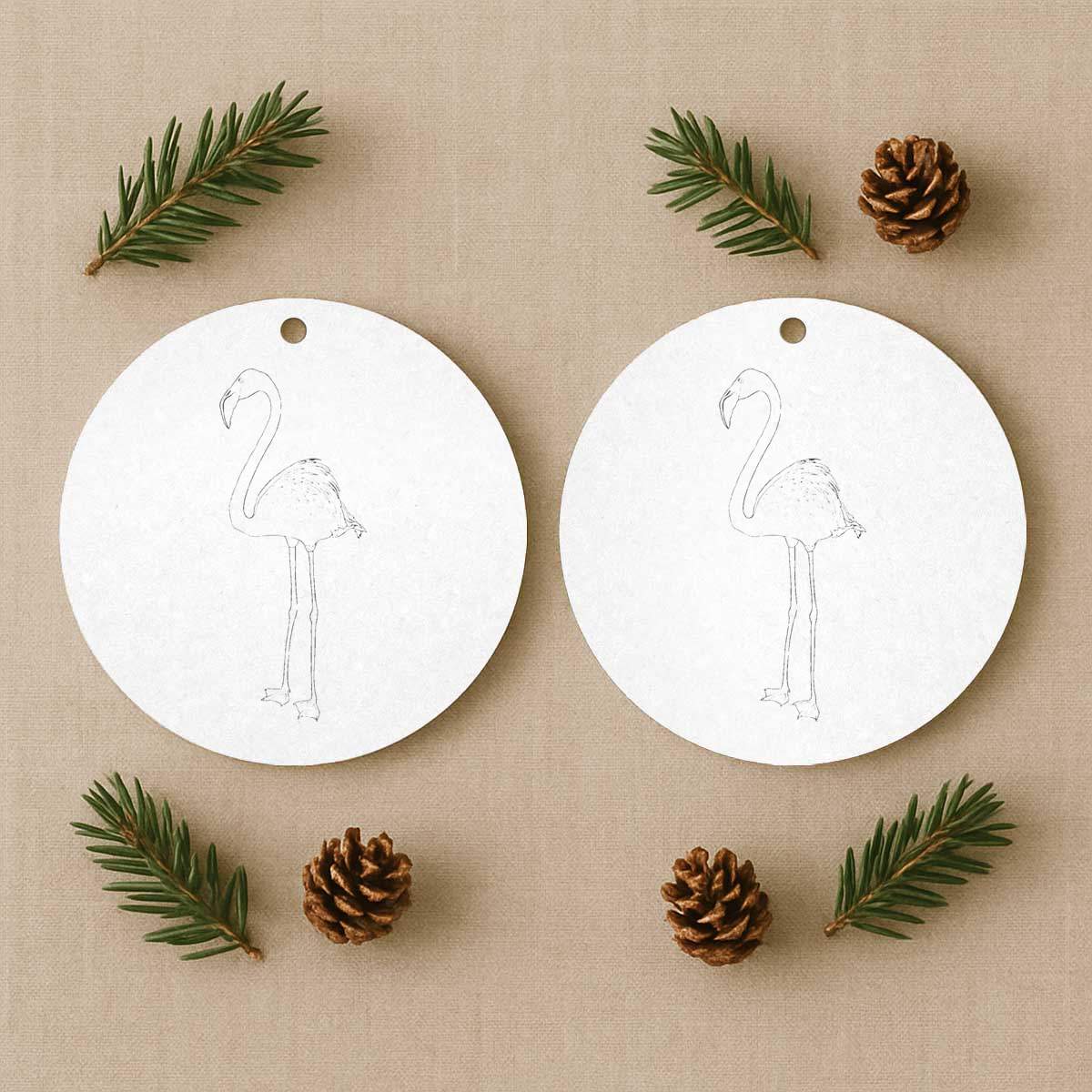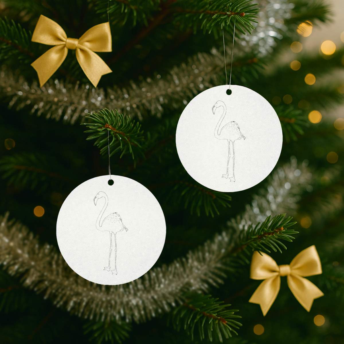 2 x 70mm 'Standing Flamingo' Flat Christmas Baubles – Festive Tree Decorations & Hanging Ornaments for Holiday Decorating & Gifting (CB00130670)