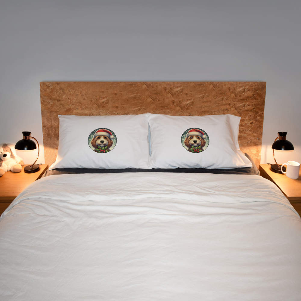 2 x 'Cockapoo Wearing a Santa Hat' Cotton Pillow Cases (PW00045482)