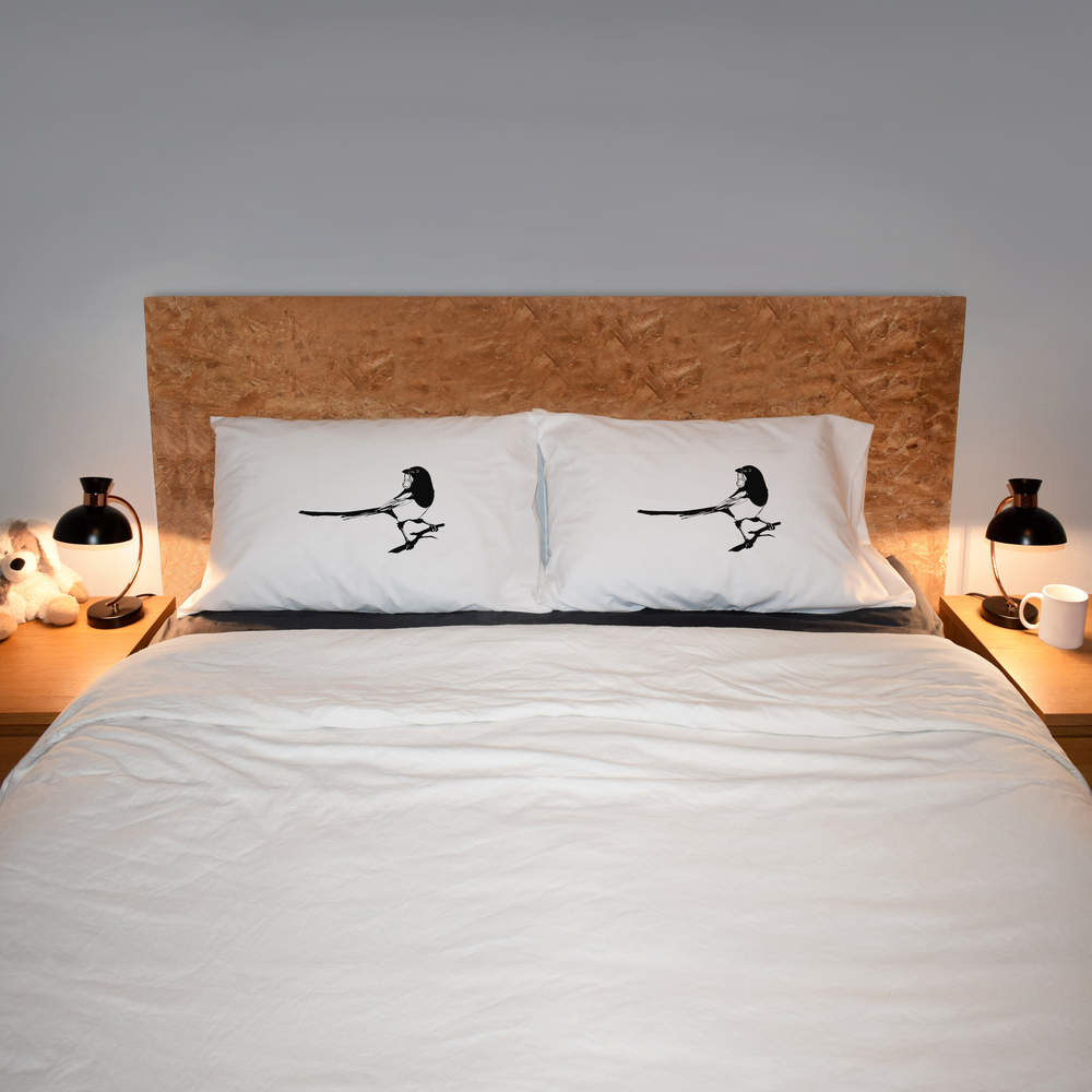 2 x 'Magpie With Ring' Cotton Pillow Cases (PW00000666)