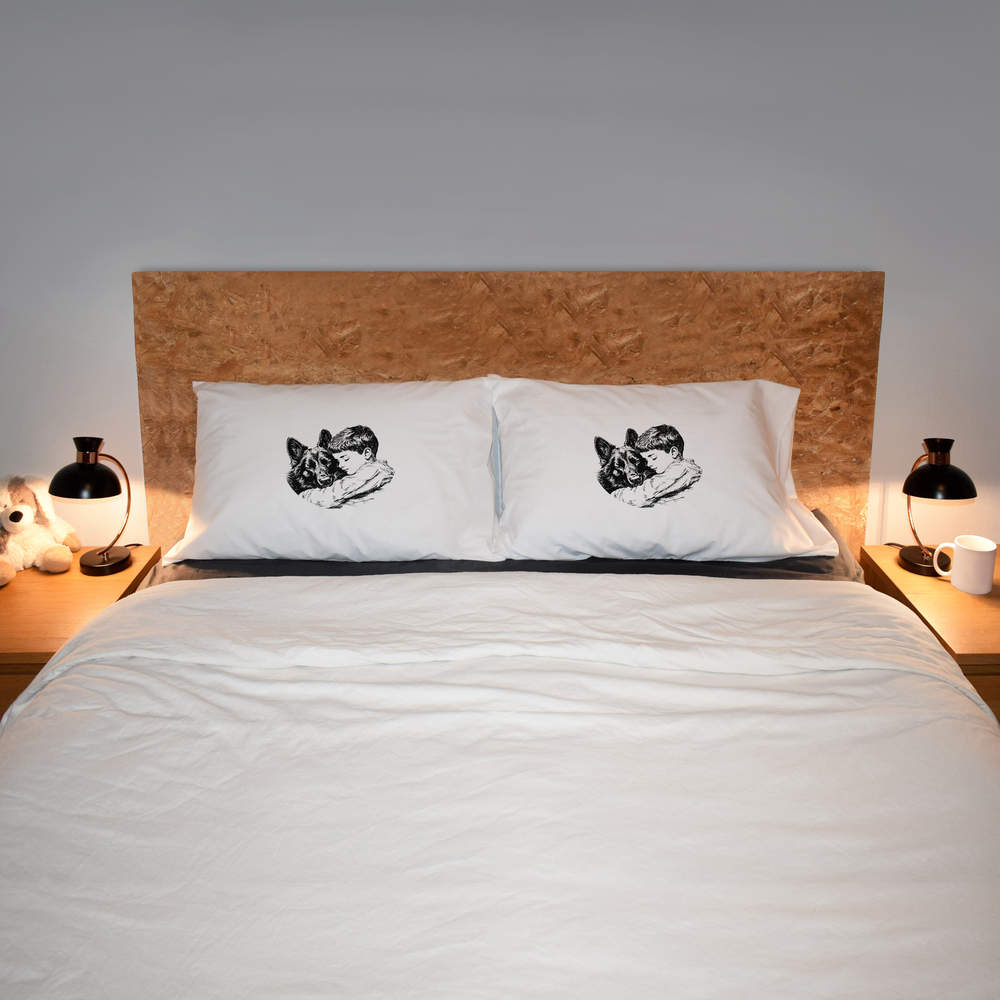 2 x 'Sleeping Boy with German Shepherd' Cotton Pillow Cases (PW00040773)