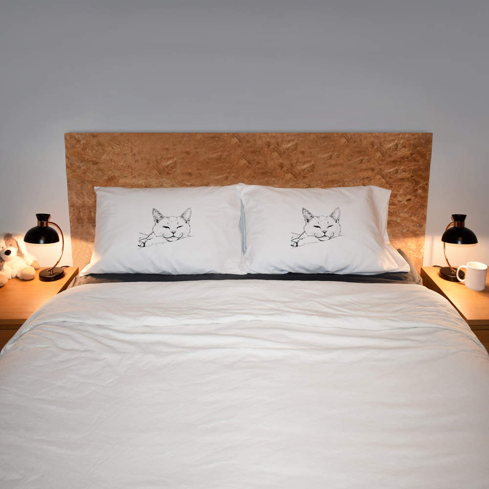 2 x 'Sleepy Cat' Cotton Pillow Cases (PW00036497)