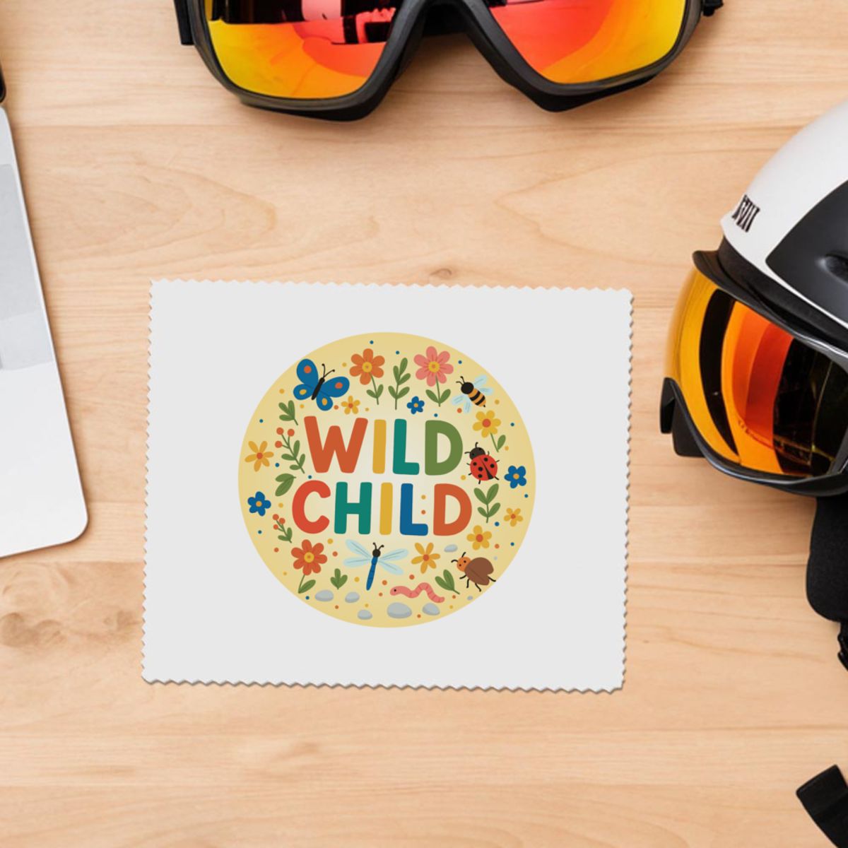 'The words 'WILD CHILD' surrounded by nature elements.'