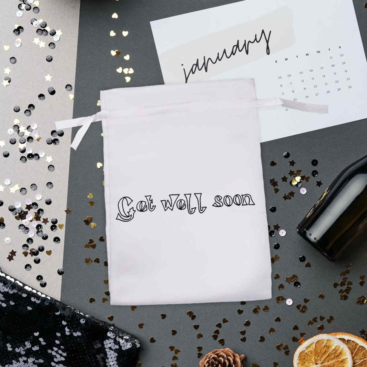25cm 'Get Well Soon' Satin Drawstring Bag / Pouch (SB00010869)