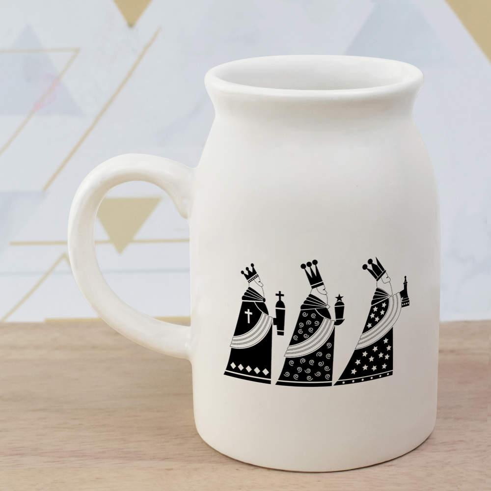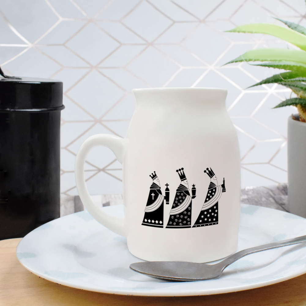 Elevate your kitchen collection with our stylish 10.5oz (300ml) milk jug. Showcasing a unique design printed prominently on both sides, this jug is not only a functional addition to your daily rituals but also a delightful visual treat.