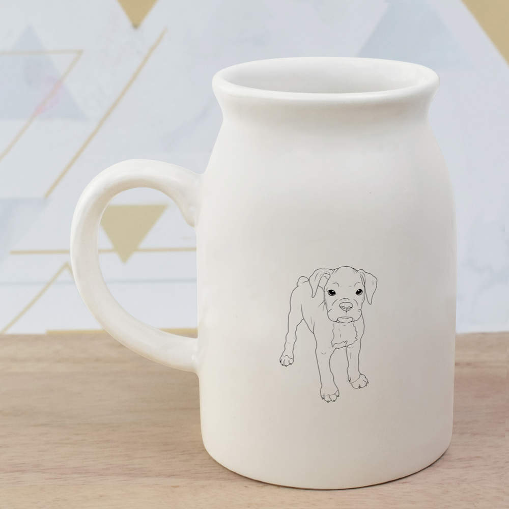 Elevate your kitchen collection with our stylish 10.5oz (300ml) milk jug. Showcasing a unique design printed prominently on both sides, this jug is not only a functional addition to your daily rituals but also a delightful visual treat.