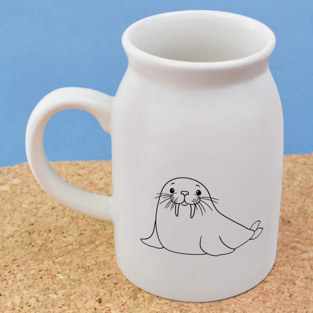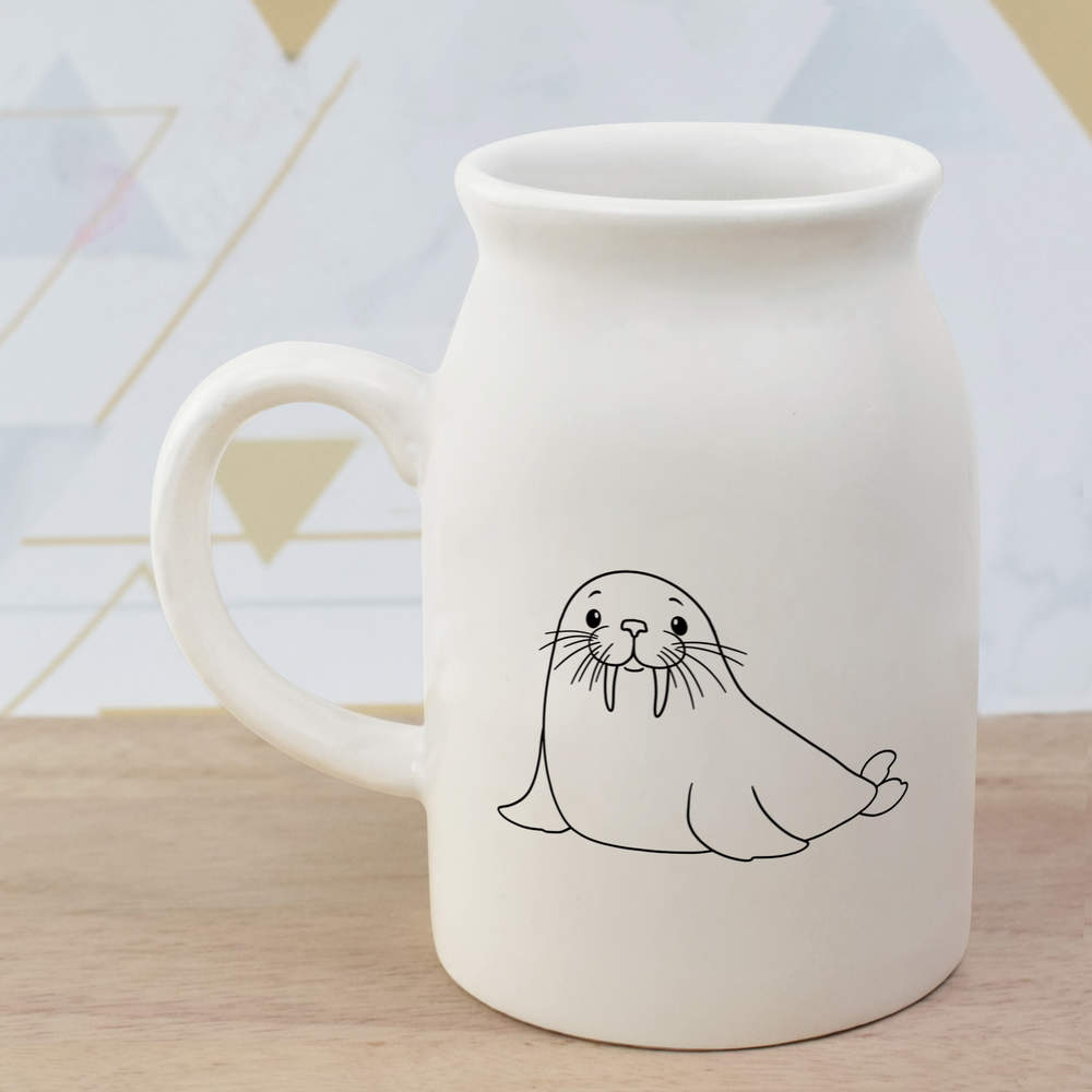 Elevate your kitchen collection with our stylish 10.5oz (300ml) milk jug. Showcasing a unique design printed prominently on both sides, this jug is not only a functional addition to your daily rituals but also a delightful visual treat.