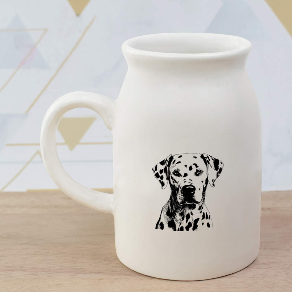 Elevate your kitchen collection with our stylish 10.5oz (300ml) milk jug. Showcasing a unique design printed prominently on both sides, this jug is not only a functional addition to your daily rituals but also a delightful visual treat.