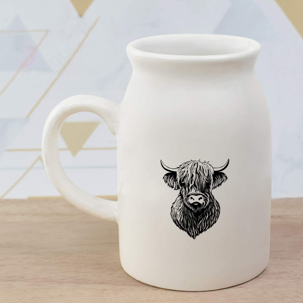 Elevate your kitchen collection with our stylish 10.5oz (300ml) milk jug. Showcasing a unique design printed prominently on both sides, this jug is not only a functional addition to your daily rituals but also a delightful visual treat.