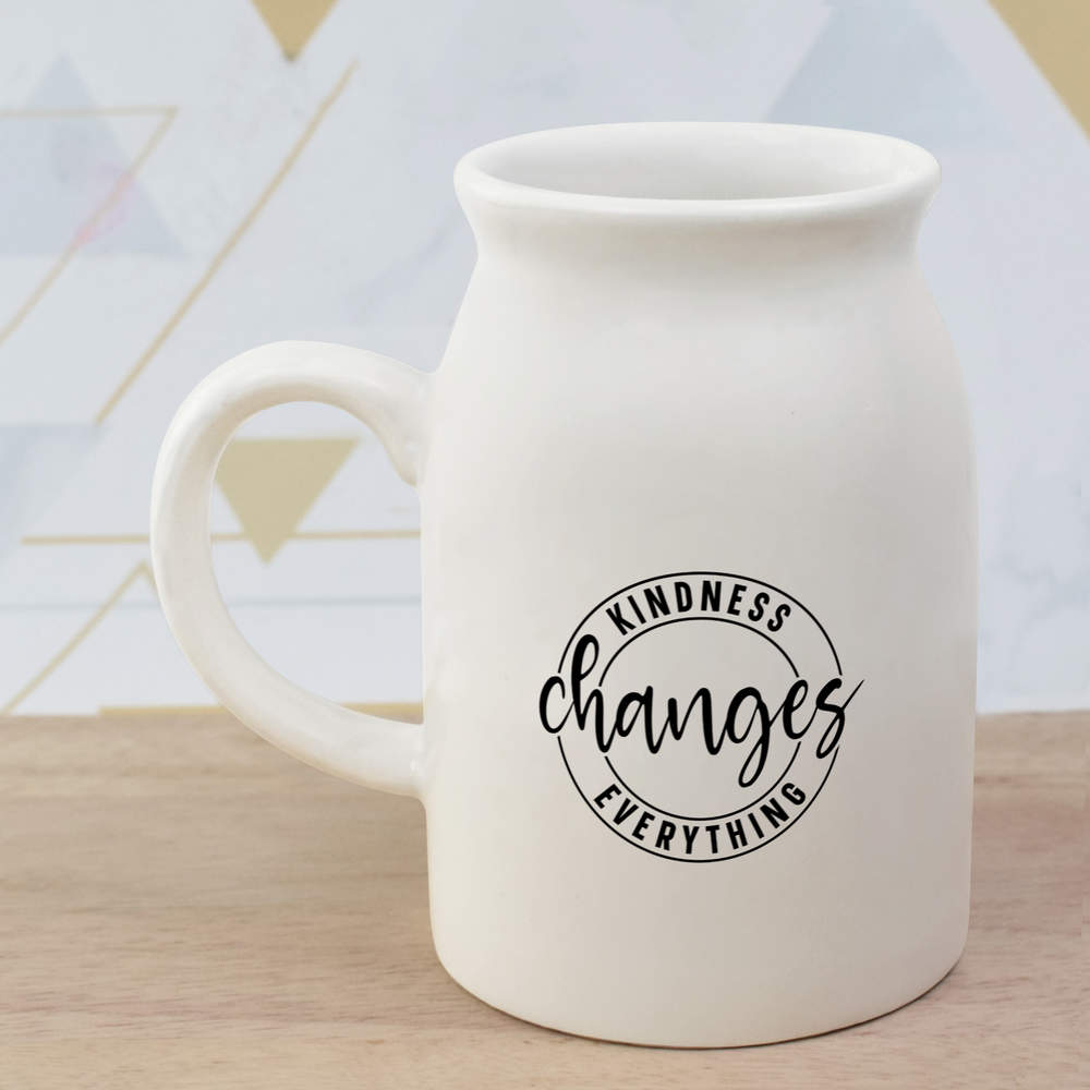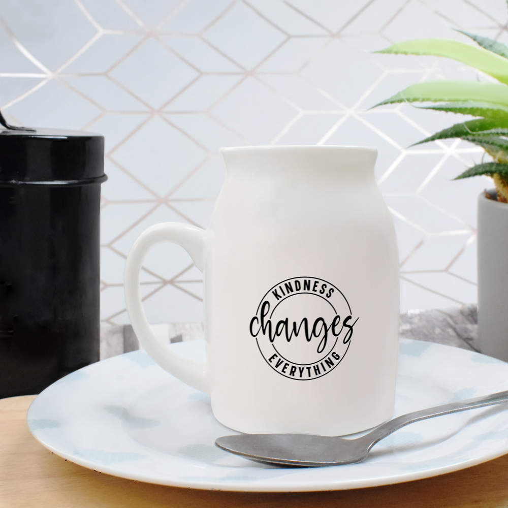 Elevate your kitchen collection with our stylish 10.5oz (300ml) milk jug. Showcasing a unique design printed prominently on both sides, this jug is not only a functional addition to your daily rituals but also a delightful visual treat.