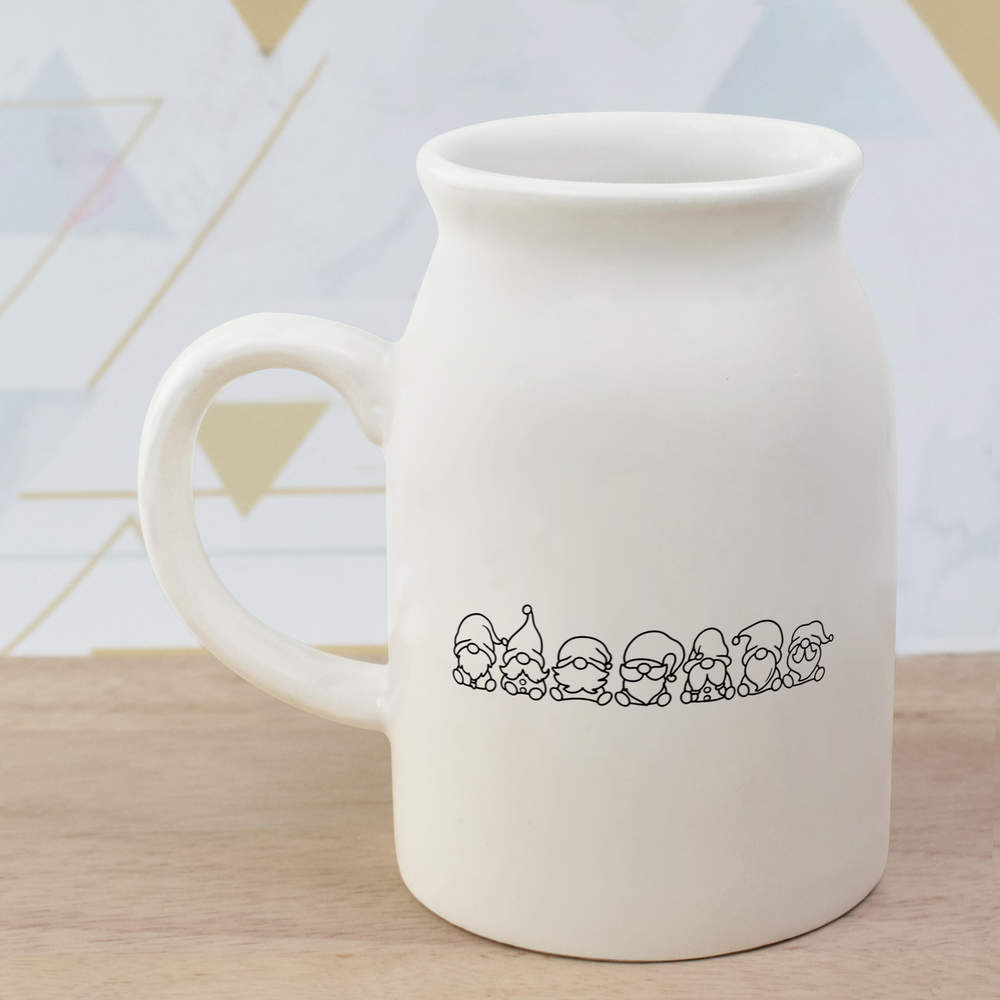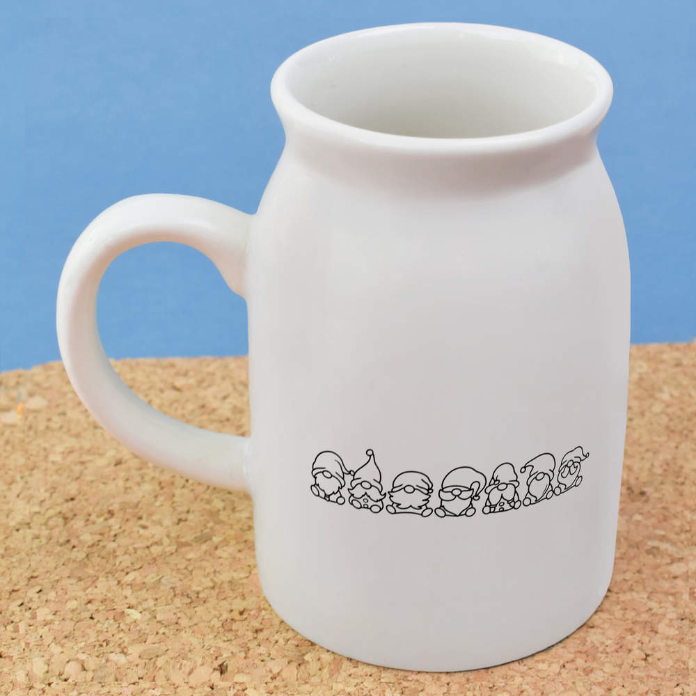 Elevate your kitchen collection with our stylish 10.5oz (300ml) milk jug. Showcasing a unique design printed prominently on both sides, this jug is not only a functional addition to your daily rituals but also a delightful visual treat.