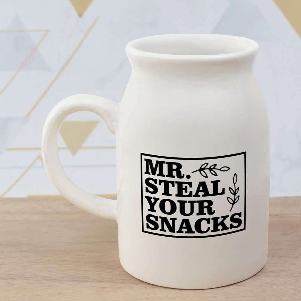 Elevate your kitchen collection with our stylish 10.5oz (300ml) milk jug. Showcasing a unique design printed prominently on both sides, this jug is not only a functional addition to your daily rituals but also a delightful visual treat.
