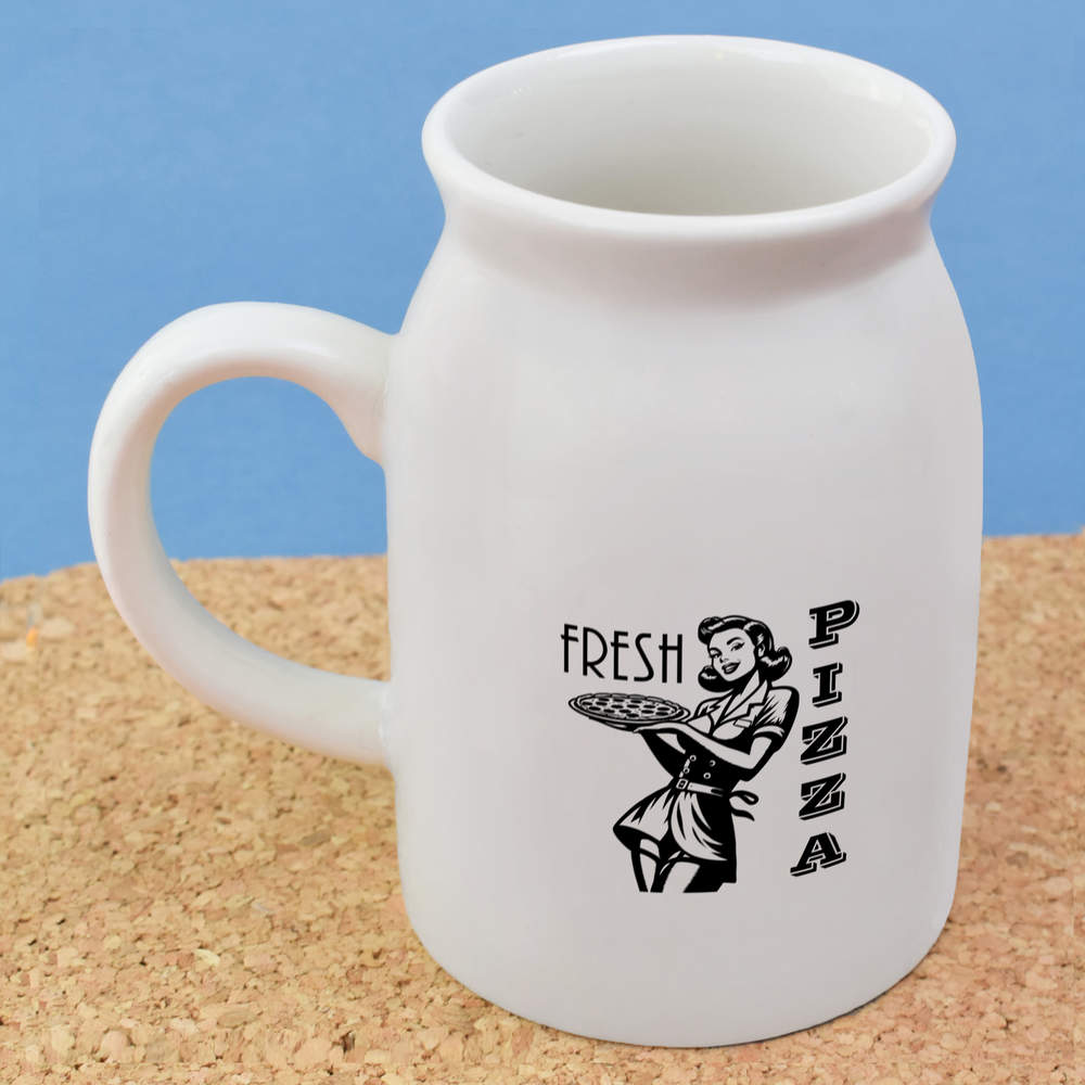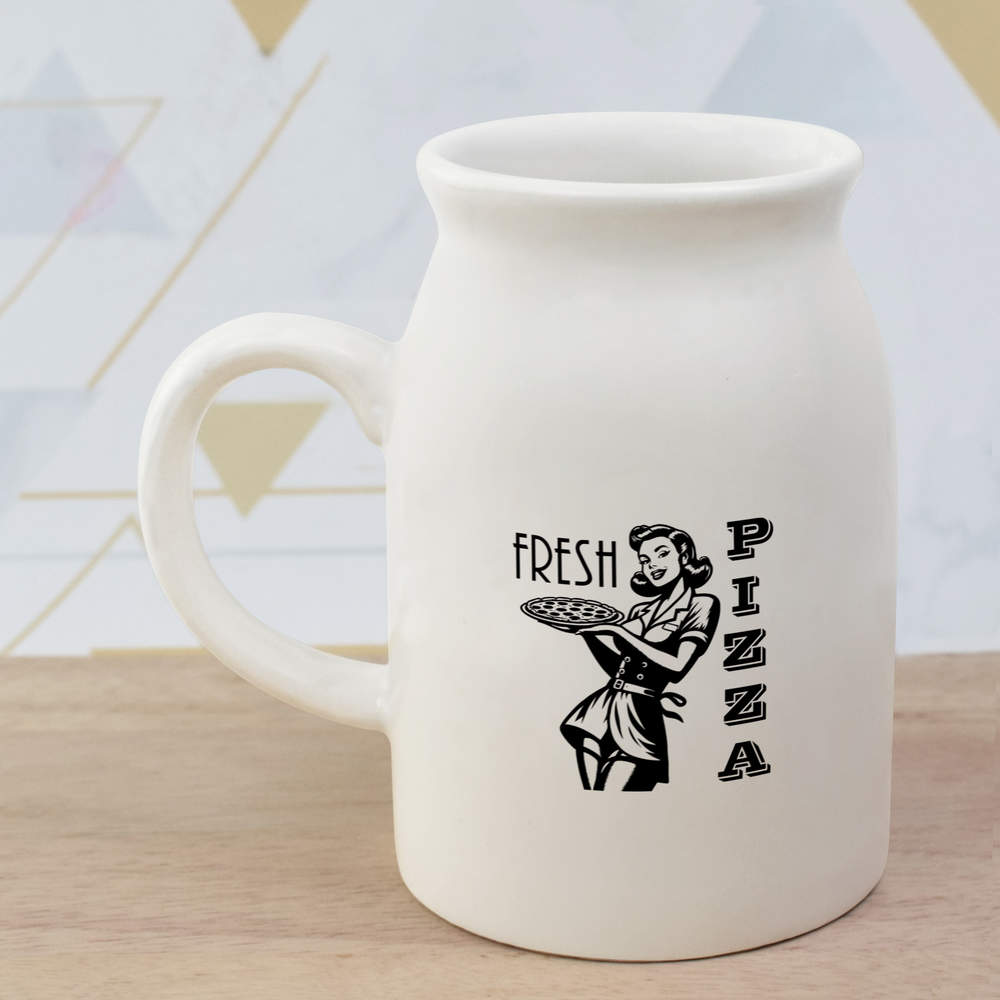 Elevate your kitchen collection with our stylish 10.5oz (300ml) milk jug. Showcasing a unique design printed prominently on both sides, this jug is not only a functional addition to your daily rituals but also a delightful visual treat.